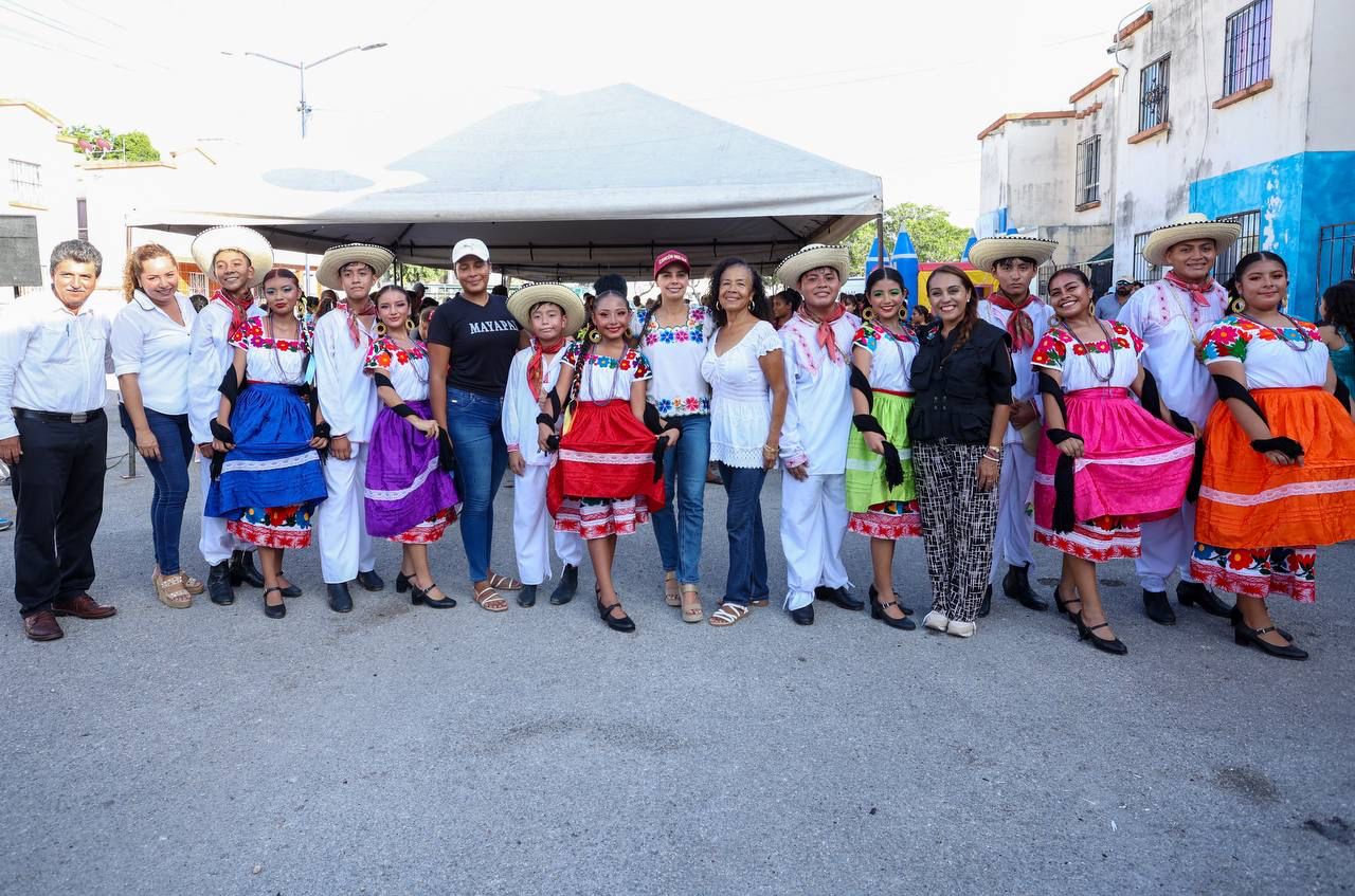 saludó a todos los vecinos y jóvenes del grupo de Danza Mayapax, quienes la