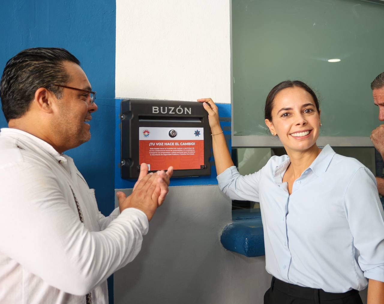 Los buzones tienen la leyenda “¡Tu voz hace el cambio! Este buzón tiene la finalidad de mejorar y participar de forma colaborativa entre autoridades y la ciudadanía. Comparte tus propuestas u observaciones para fortalecer la Secretaría de Seguridad Pública y Tránsito Municipal”.