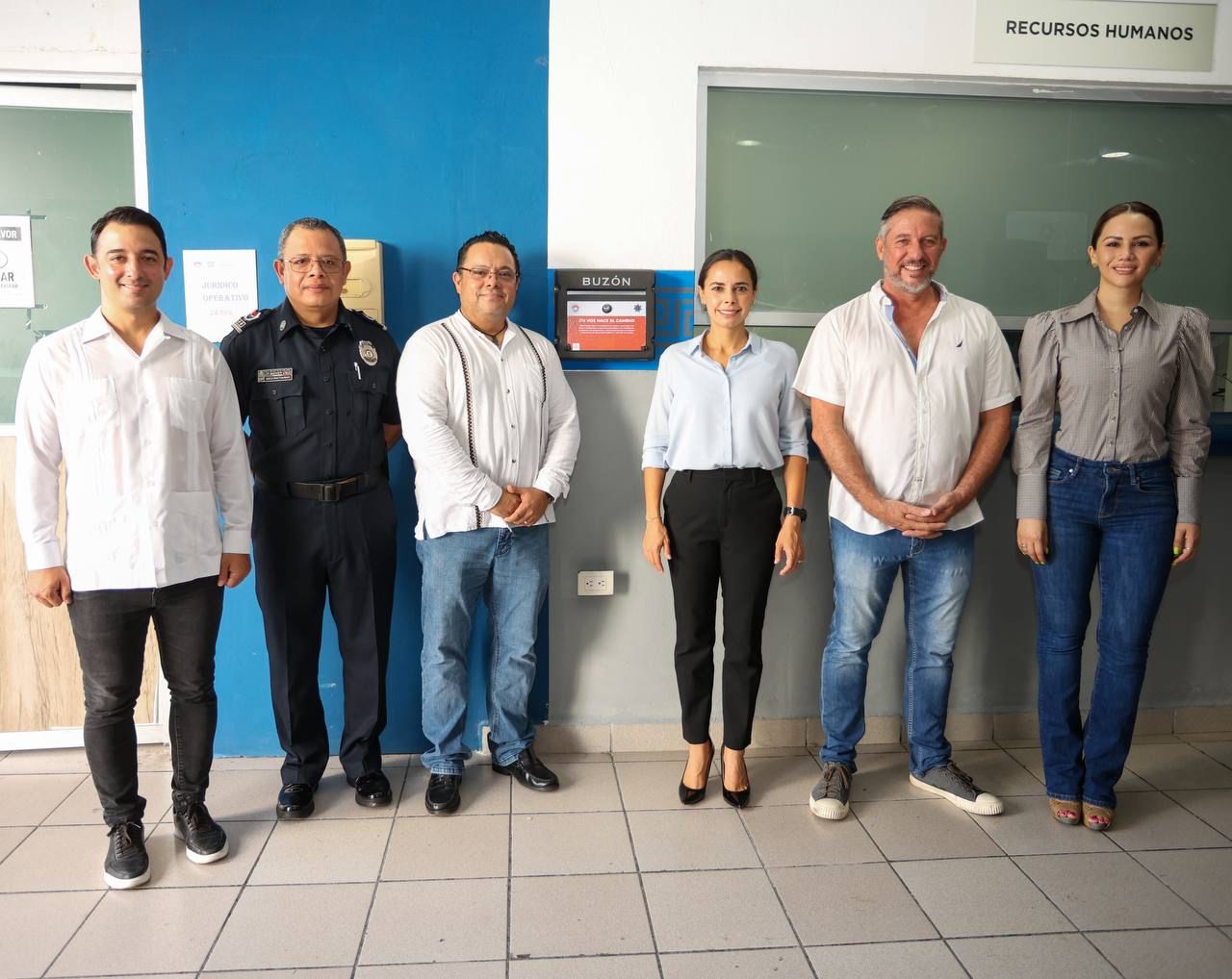 Como parte del protocolo, la Primera Autoridad Municipal constató la ubicación del buzón en dicha secretaría y también recibió de manos del coordinador General de la Mesa Ciudadanía de Seguridad y Justicia de Cancún e Isla Mujeres, Julio Villarreal Zapata, el correspondiente que será colocado en el Palacio Municipal.