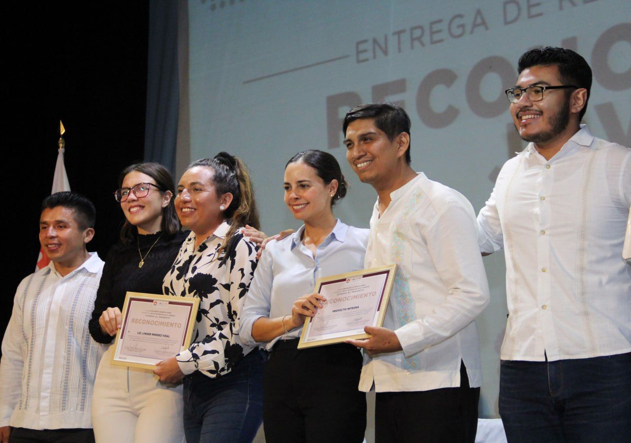 Por su parte, la Directora General del IMJUVE, Danielle Camargo Dávila Madrid, mencionó sentirse feliz de ver reflejado los esfuerzos y resultados en dichos reconocimientos, “las y los jóvenes estamos presentes en los espacios públicos, en la vida pública, pertenecemos a la toma de decisiones, pertenecemos a la transformación, que se vive en Cancún, además, trabajamos con confianza gracias al respaldo que nos ofrece Ana Paty Peralta, la Presidenta Municipal más joven que ha gobernado nuestro Municipio”.