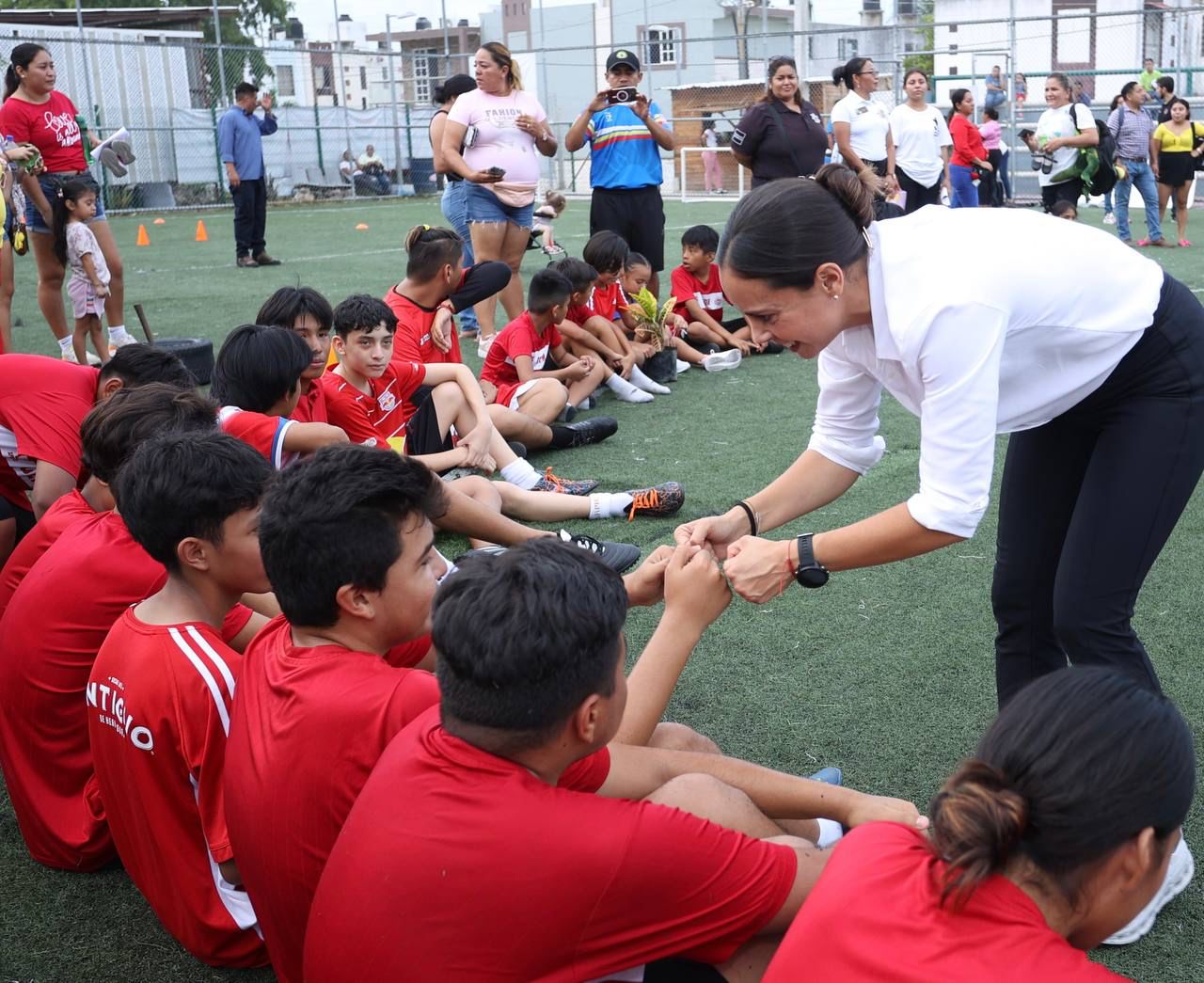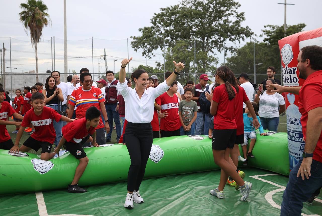 Cancún, Q. R., a 21 de agosto de 2023.- En un ambiente familiar, de diversión y convivencia, la Presidenta Municipal, Ana Paty Peralta, encabezó la sexta edición del programa "El fútbol nos une”, organizado por la Asociación del Club Pioneros de Cancún, en colaboración con diversas dependencias e institutos del Ayuntamiento, con la intención de promover dicho deporte en la comunidad, la sana convivencia y reducir las brechas de desigualdad.