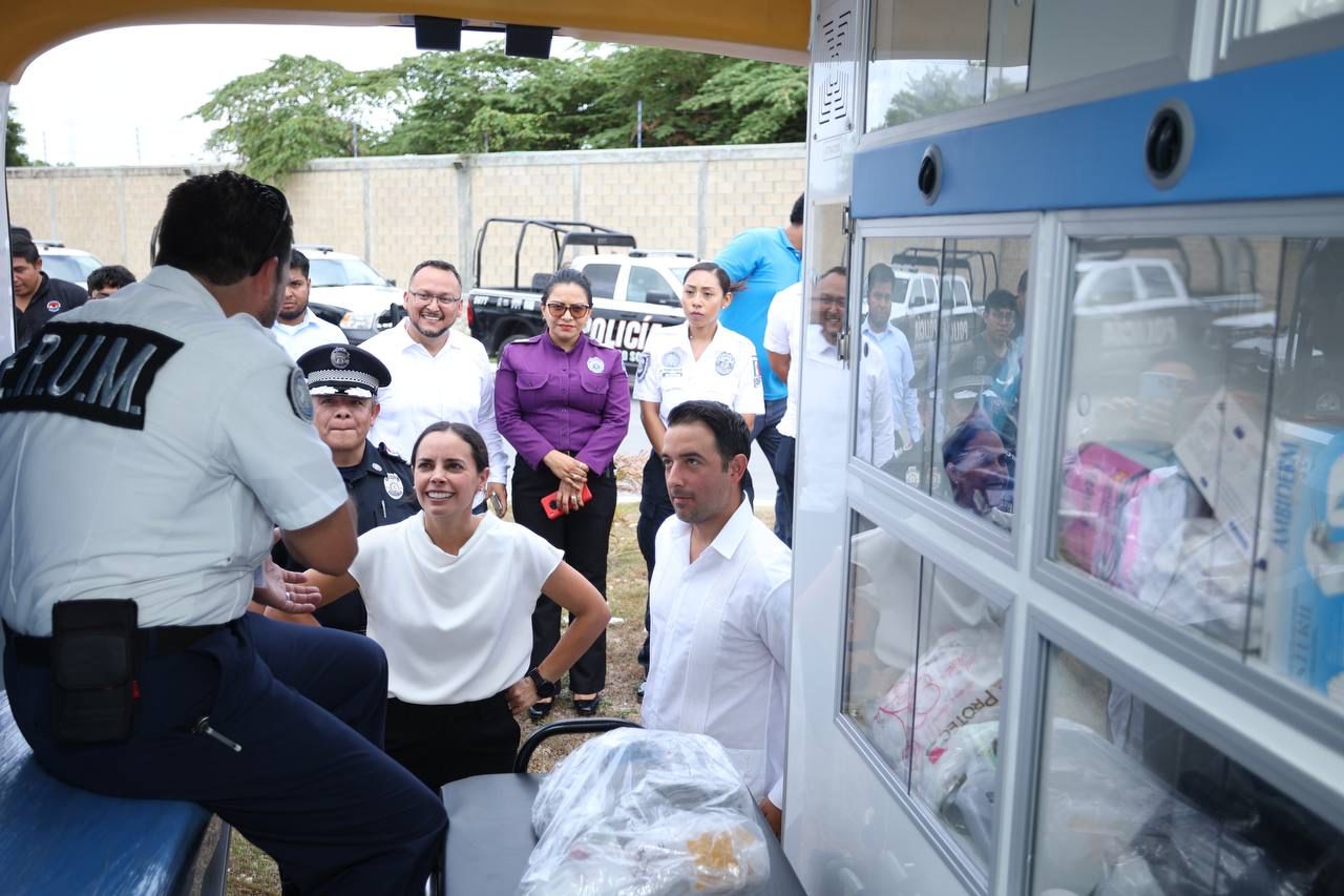 En su carácter de anfitriona en Cancún, Ana Paty Peralta entregó junto a la Gobernadora, 35 vehículos tipo pick up, 20 motocicletas, seis unidades tipo sedán, cuatro cuatrimoto y 1 ambulancia de urgencias básicas a la Secretaría antes mencionada y al Escuadrón de Rescate y Urgencias Médicas (E.R.U.M), permitiendo reforzar las acciones de prevención y atención para la preservación de la paz.