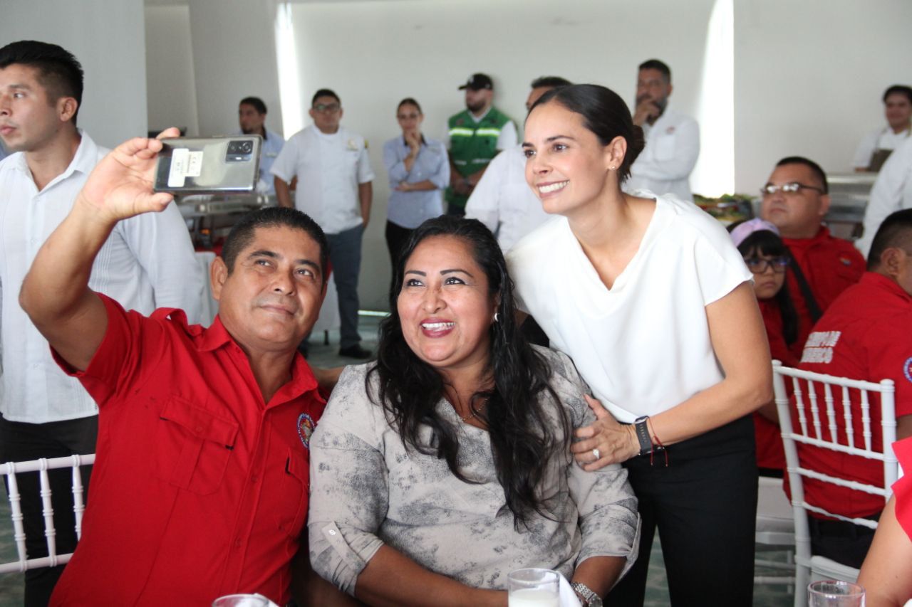 176 elementos de bomberos, algunos acompañados de sus familias, fueron saludados por la Alcaldesa junto al director de la dependencia, Arturo Sosa Muñoz, a quienes en cada oportunidad les agradecieron por ser esos héroes sin capa que arriesgan todos los días su vida por salvaguardar las y los cancunenses y visitantes.