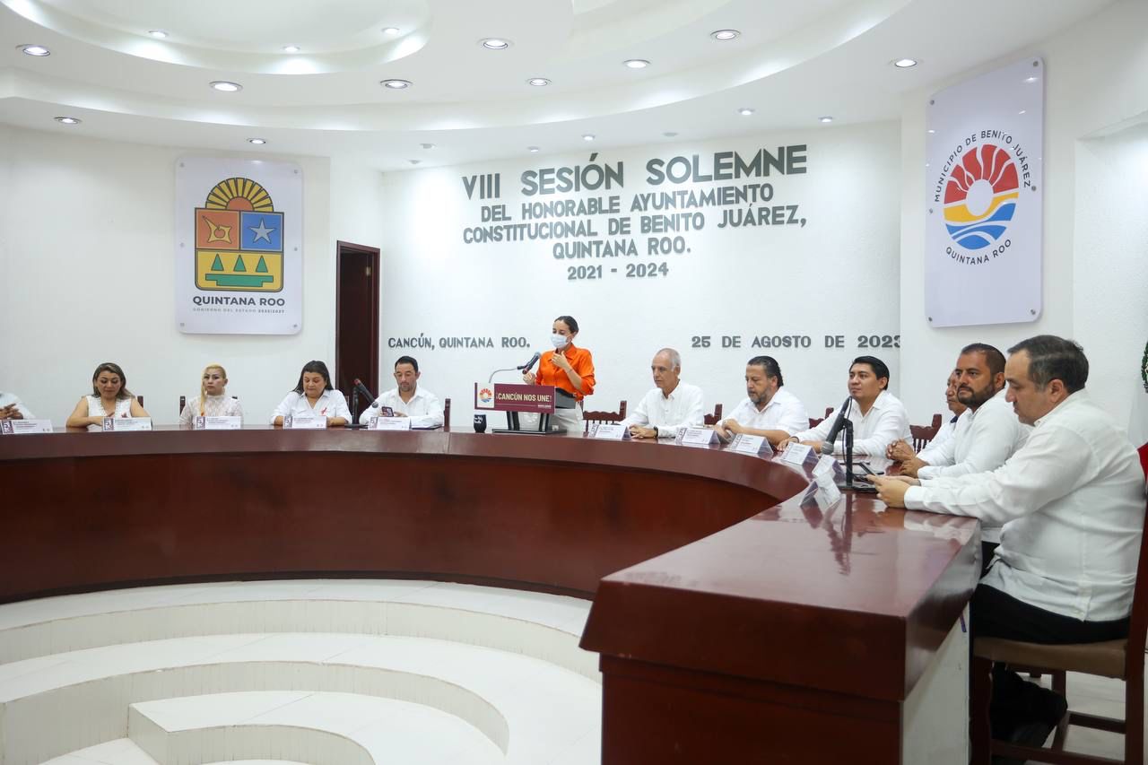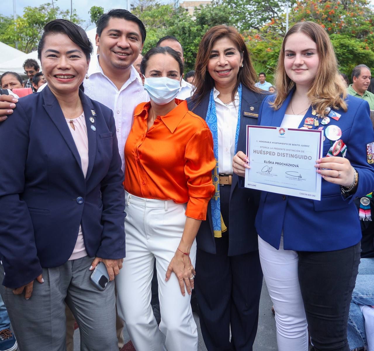 Cancún, Q. R., 25 de agosto de 2023.- En la Octava Sesión Solemne, encabezada por la Presidenta Municipal, Ana Paty Peralta, el Cabildo de Benito Juárez otorgó la distinción de Huésped Distinguido a 74 jóvenes de 19 países que asisten al Intercambio 2023-2024 de Rotary Youth Exchange Distrito 4195-México, por la labor humanitaria y altruista que realizan en sus ciudades y comunidades.