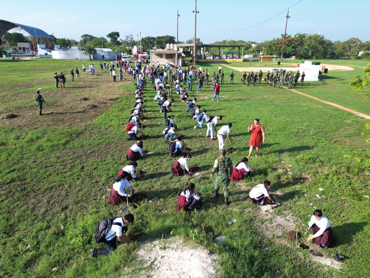 En ese marco, se anunció que 500 de los ejemplares provenientes del vivero forestal militar de Felipe Carrillo Puerto serán para la unidad deportiva a un lado del domo y otros 200 se repartirán para las escuelas de la delegación, con el fin de contrarrestar el cambio climático.