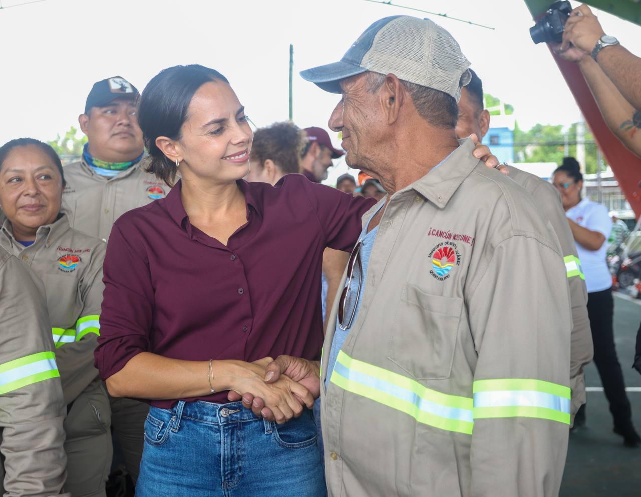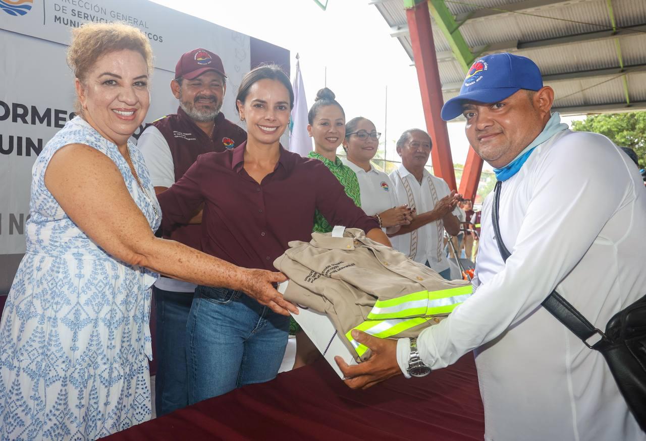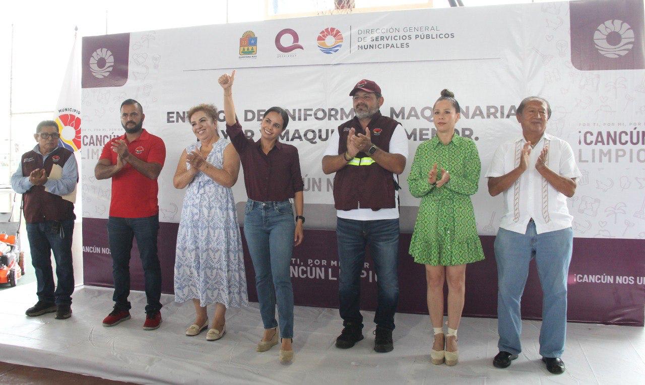Reflejo de ese compromiso por un Cancún limpio, posteriormente, junto con la secretaria del Sindicato Único de Trabajadores al Servicio del Ayuntamiento de Benito Juárez y de sus Organismos Descentralizados (SUTASABJYOD), Delia Alvarado, y el titular de Servicios Públicos, Antonio de la Torre Chambé, Ana Paty Peralta entregó uniformes, maquinaria mayor y maquinaria menor al personal de dicha dependencia, como apoyo a los trabajadores para mantener el buen estado de la infraestructura urbana como parques, espacios y áreas comunes en el municipio.