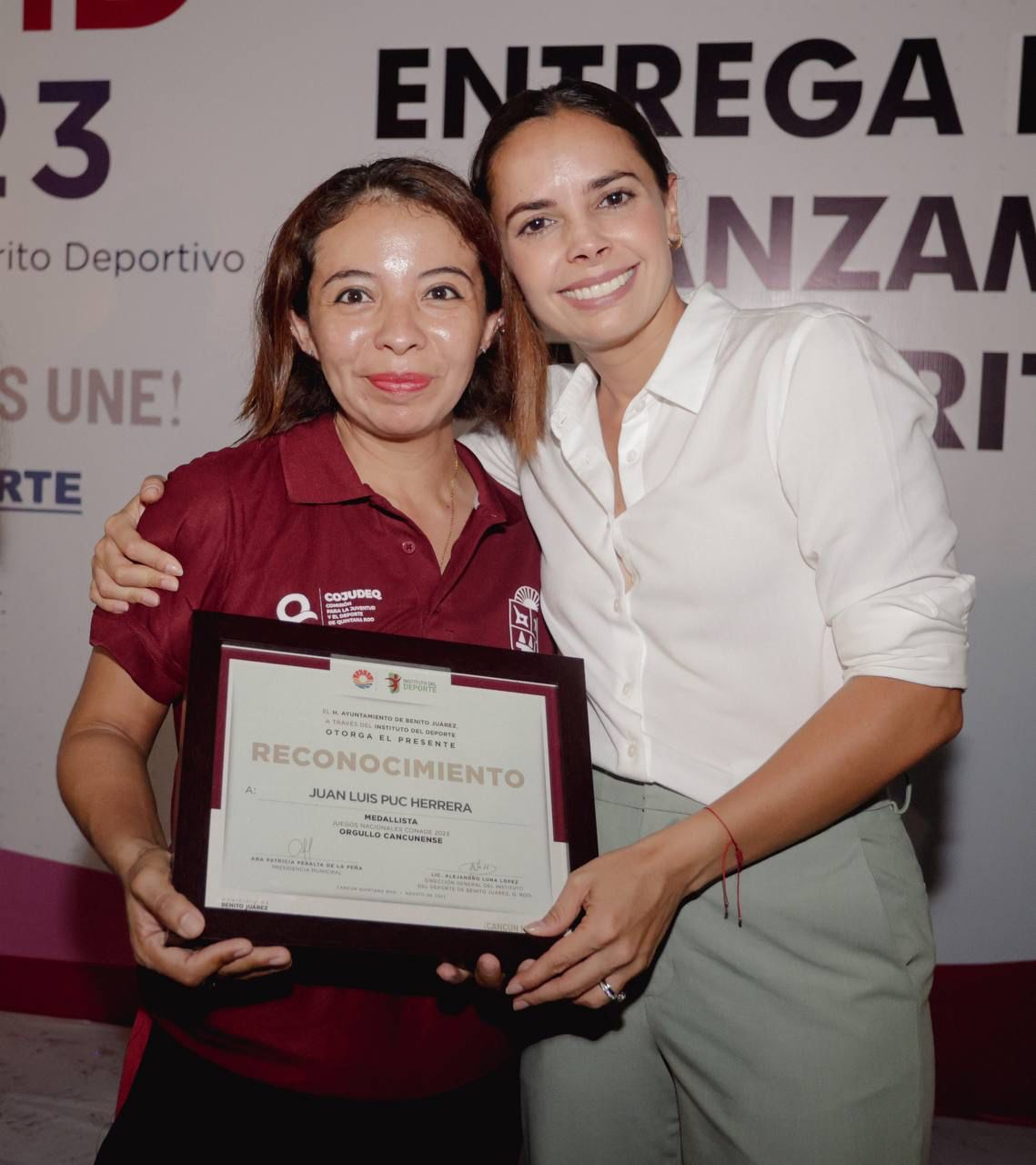 “Esta ceremonia es histórica, pues es la primera vez que el Ayuntamiento de Benito Juárez reconoce de manera pública y formal el desempeño de nuestros atletas y lo hacemos porque estoy convencida que si queremos un mejor Cancún, tenemos que reconocer e impulsar a quienes le echan todas las ganas, como ustedes, que son una gran inspiración para las nuevas generaciones”, destacó.