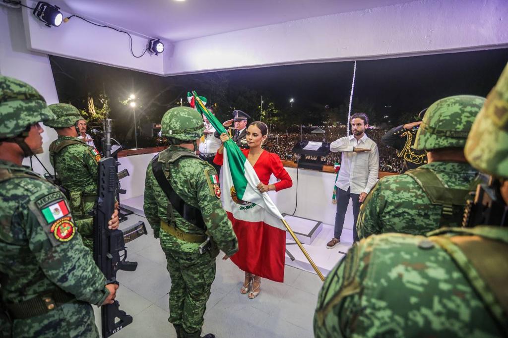 “Cancunenses: ¡Vivan los héroes que nos dieron patria y libertad!, ¡Viva Don Miguel Hidalgo y Costilla!, ¡Viva José María Morelos y Pavón!, ¡Viva la Corregidora Josefa Ortiz de Domínguez!, ¡Viva Allende!, ¡Viva Aldama!, ¡Viva la transformación de nuestra ciudad!, ¡Vivan las niñas y los niños!, ¡Viva la paz!, ¡Viva el municipio de Benito Juárez!, ¡Viva Cancún!, ¡Viva la Independencia Nacional!, ¡Viva México!”, proclamas que fueron repetidas con euforia al unísono por la población, seguidas de porras y aplausos.