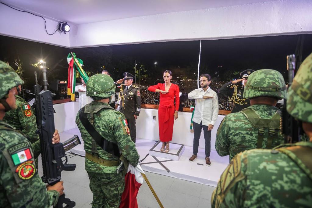 Tal como lo indica el protocolo oficial, a las 22:50 horas, después de la lectura de un extracto del documento “Sentimientos de la Nación”, por parte del secretario general del Ayuntamiento, Pablo Gutiérrez Fernández, que reunió en 23 puntos la esencia de la lucha independentista, Ana Paty Peralta salió al balcón central del recinto de gobierno, participó en el homenaje al Lábaro Patrio, para posteriormente pronunciar con firmeza las arengas de los ilustres personajes de la historia del país.