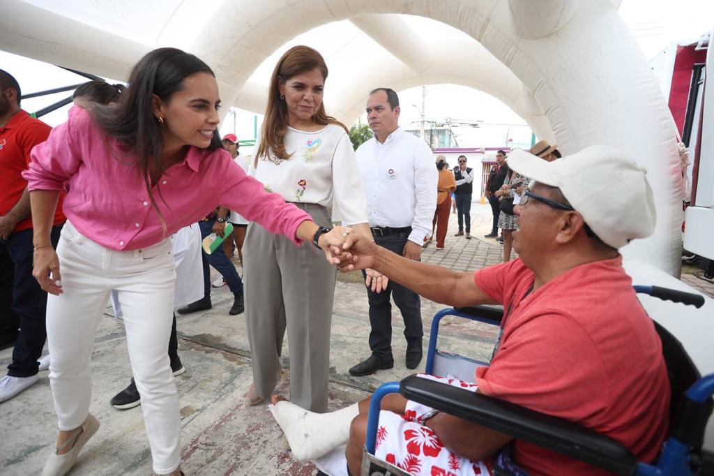 Cancún, Q. R., a 26 de mayo de 2023.- Con el objetivo de reducir rezagos de salud, llevar bienestar a todos los hogares, así como de proveer servicios de salud y brindar asistencia social integral y multidisciplinaria, la Presidenta Municipal, Ana Paty Peralta, acompañó a la Gobernadora Mara Lezama a una visita a las unidades médicas móviles del programa “Salud para tod@s” que realiza la Secretaria de Salud de Quintana Roo.
