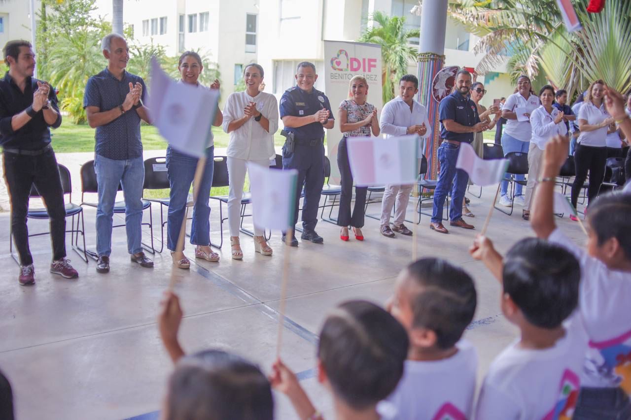 “Estamos con ustedes, para a festejarlos, a que sintamos ese orgullo de ser cancunenses, de ser quintanarroenses y, sobre todo, de ser mexicanos; más que un protocolo, venimos a convivir, venimos a decirles que trabajamos todos los días desde el gobierno municipal, con las diferentes instancias, con la familia del DIF para fortalecer a nuestras niñas, niños y adolescentes, son lo más importante y valioso para nosotros”, dijo la Alcaldesa durante su intervención en el evento, en las instalaciones del CAT.