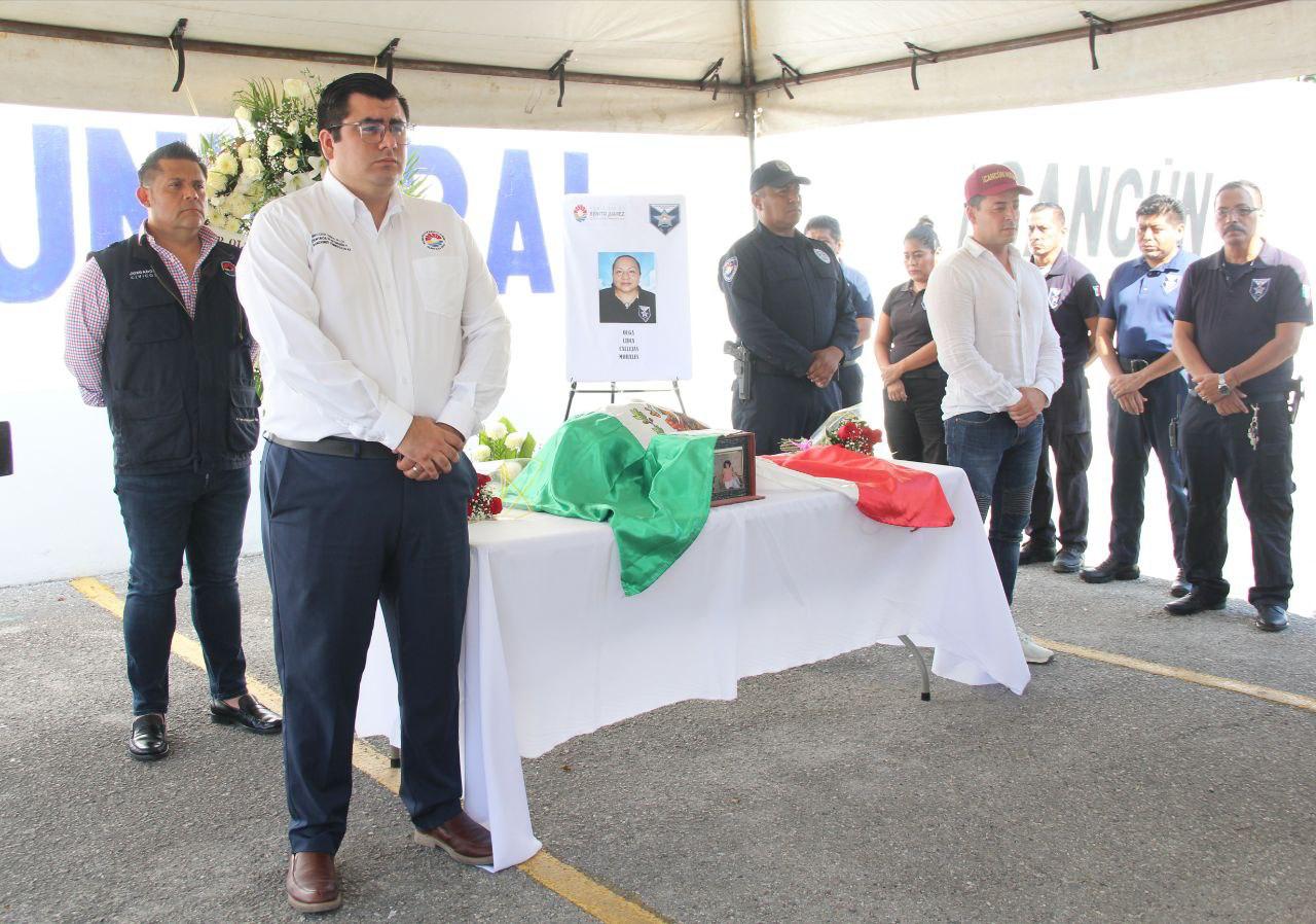Cancún, Q. R., a 22 de septiembre de 2023.- Con una distinguida ceremonia luctuosa, el director del Centro de Retención y Sanciones Administrativas, Miguel Arturo Moisés Martínez, en representación de la Presidenta Municipal, Ana Paty Peralta; personal de la Secretaría de Seguridad Pública y Tránsito, y familiares de la custodia Olga Lidia Morales Callejas, despidieron con honores fúnebres a dicho elemento, quien perdió la vida el pasado miércoles 20 de septiembre.