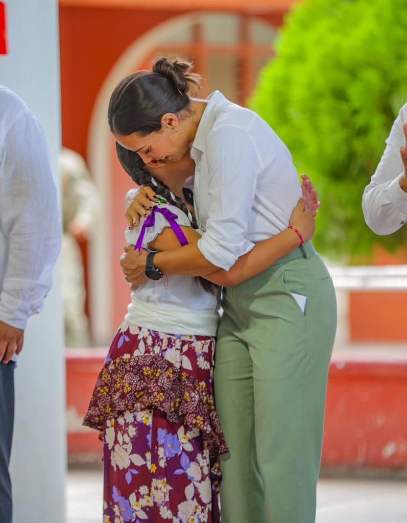 Al término del protocolo, Ana Paty Peralta convivió un gran rato con los niños y niñas, a quienes abrazó cariñosamente, saludó de beso en la mejilla y platicó para exhortarlos a no tirar basura en las calles y en la escuela, ser amables con sus compañeros y no molestarse entre sí, respetar a sus mayores y sobre todo, ser felices porque es la manera que se logrará tener una mejor sociedad con sana convivencia.