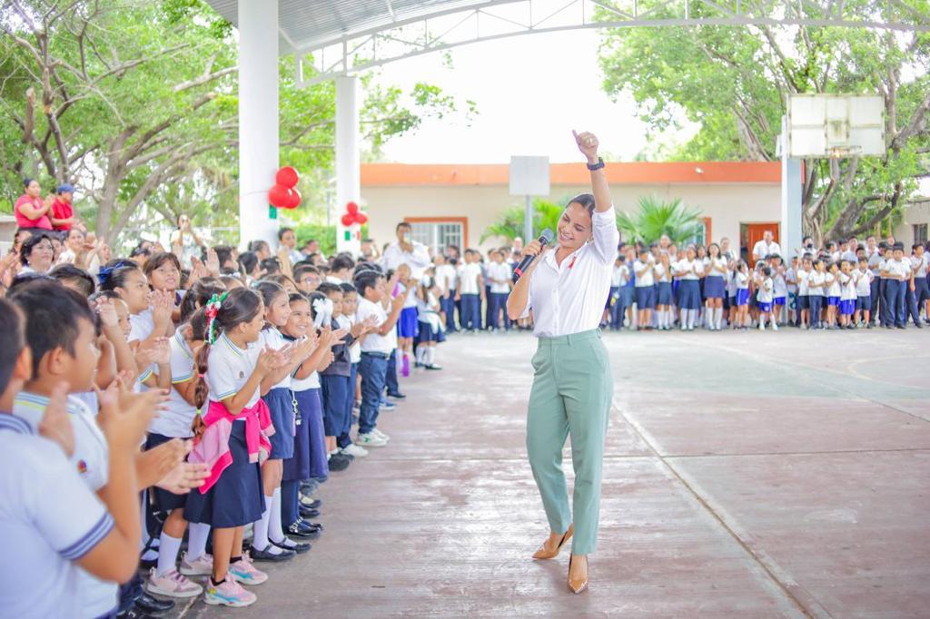 “Felicidades a los padres de familia por el gran trabajo y unión que hicieron para tener esta infraestructura, ya que apenas en abril recibieron la tarjeta con el apoyo y hoy es inaugurado. Hoy lo constatamos en esta escuela: cuando los recursos se ejercen de manera transparente y eficiente, el dinero alcanza para más, como bien lo dice nuestra gobernadora Mara Lezama”, comentó.