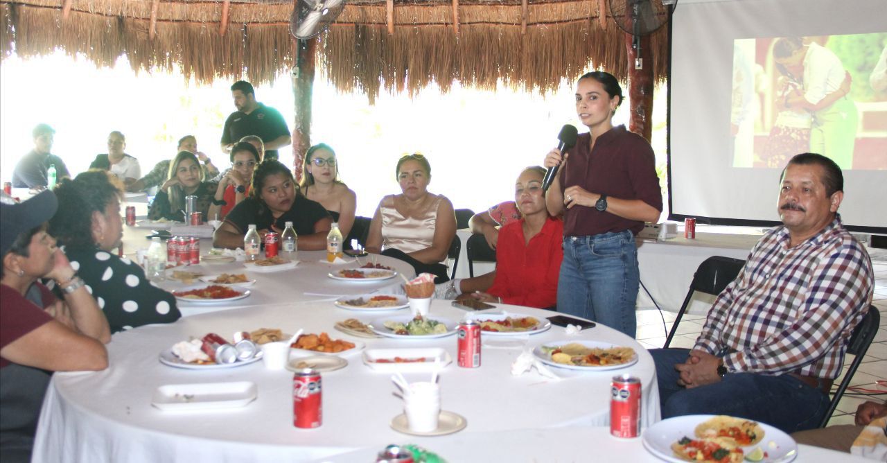 Durante su estadía en el Salón Oaxaca en la Supermanzana 98, la Primera Autoridad Municipal felicitó a las y los colaboradores de su gobierno por su entrega, vocación de servicio y les pidió continuar trabajando en equipo para seguir transformando Cancún.