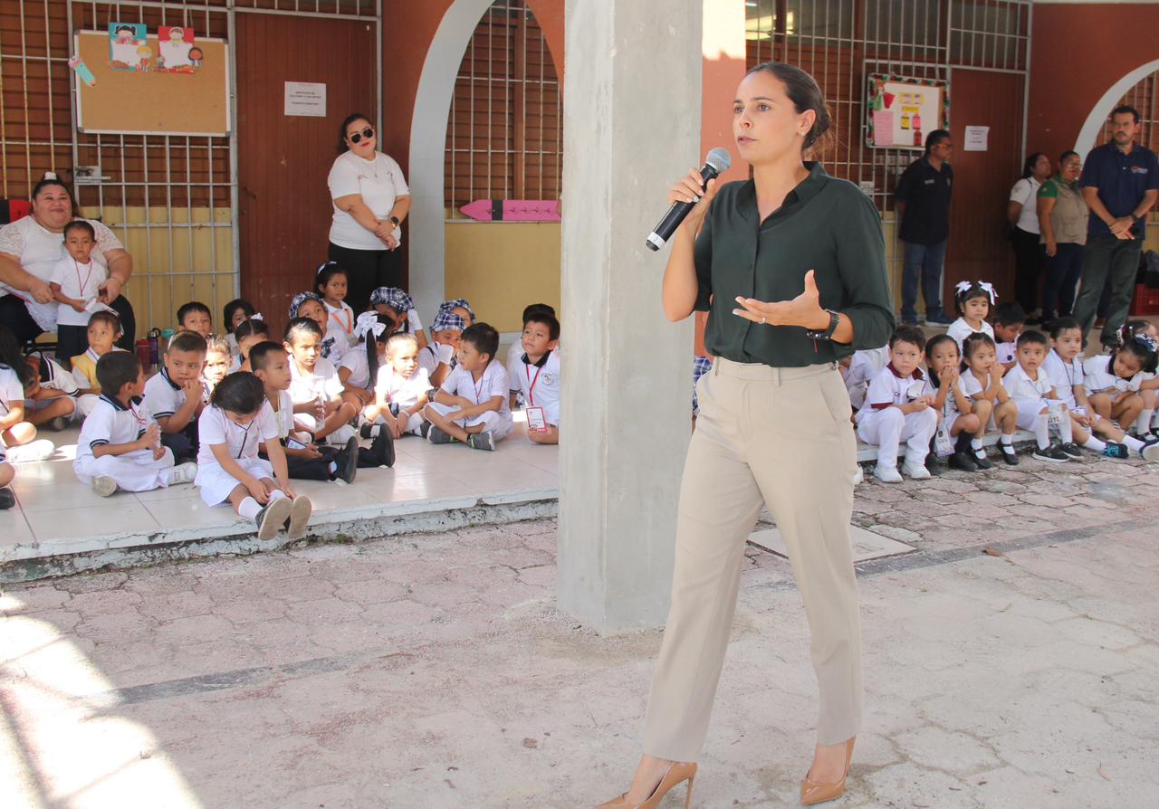 Cancún, Q. R., a 09 de octubre de 2023.- Como cada lunes y a primera hora, la Presidenta Municipal de Benito Juárez, Ana Paty Peralta, encabezó el evento cívico del Jardín de niños “Nuevo imperio maya” en donde también se presentó el programa “Vive sin Acoso”, en donde se llevan a las instituciones educativas diversas actividades en donde las niñas y niños adquieren herramientas que les permitan identificar conductas violentas y de alto riesgo, las cuales les contribuirán a disminuir los índices de acoso y violencia escolar en el municipio.