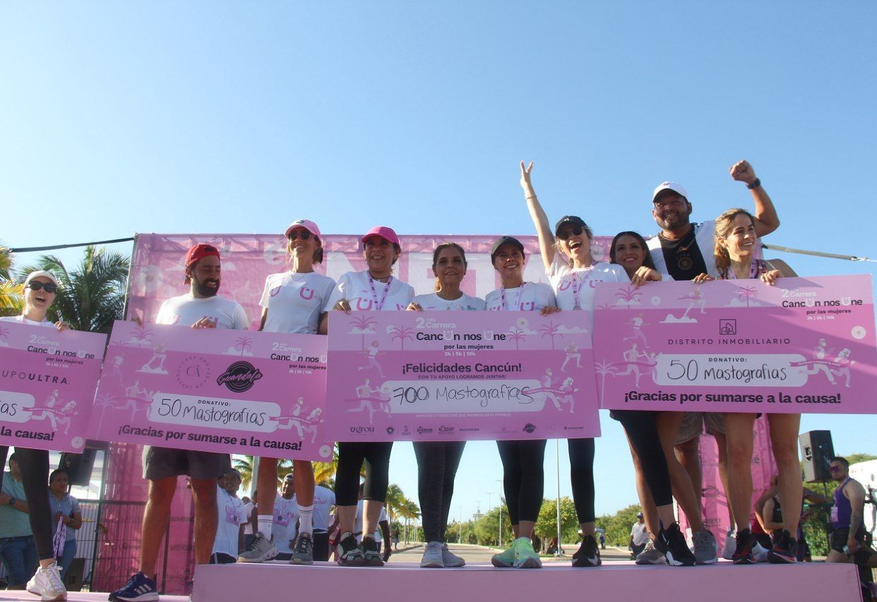 Luego de que todos los cancunenses y visitantes cruzaran la línea de meta, Ana Paty Peralta y representantes de la empresa Ug´rou, con gran emoción dieron a conocer que el número total de mastografías recaudadas en esta carrera fue de 860, superando la proyección estimada de 700.