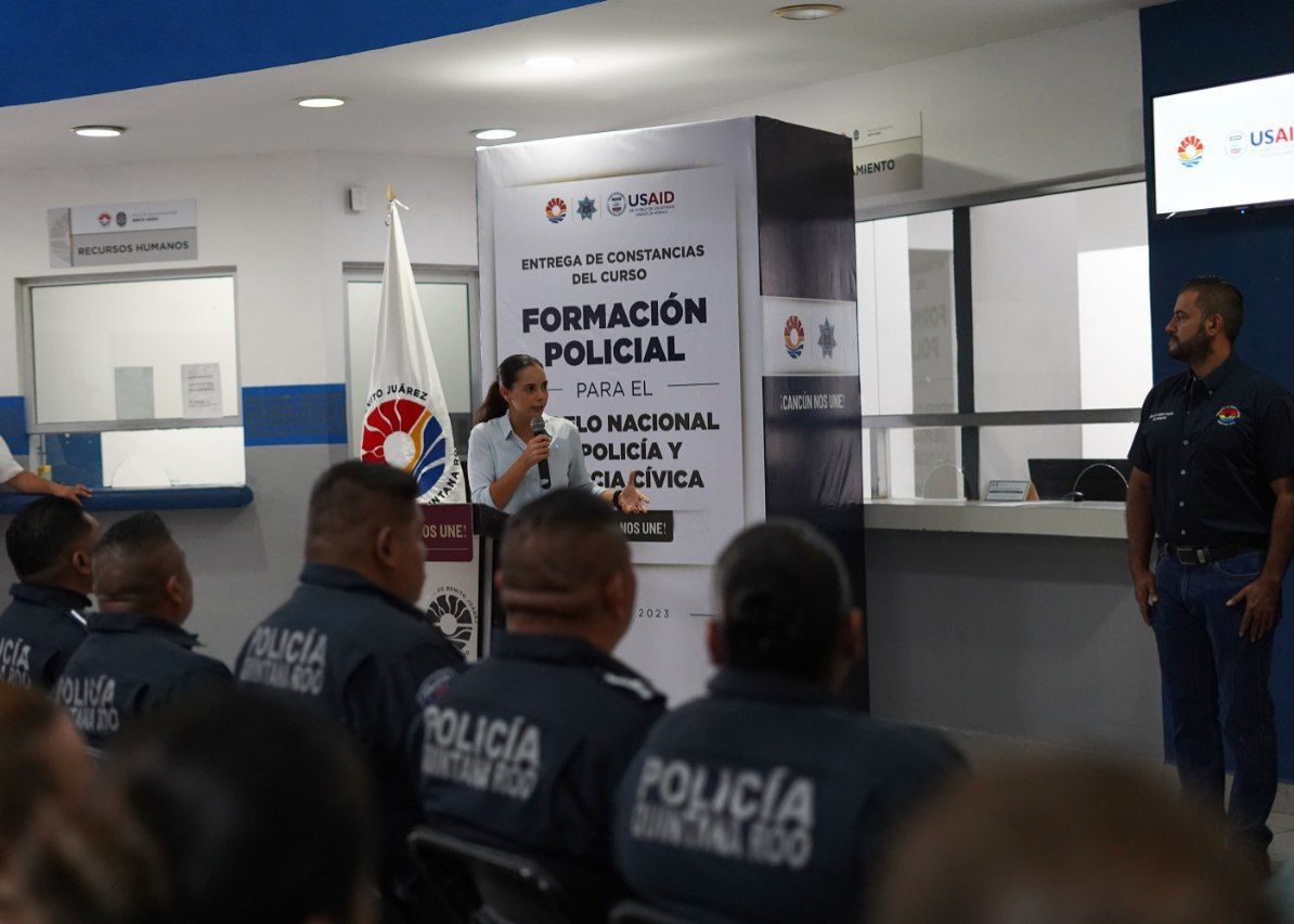 Por su parte, la directora adjunta de la oficina de Gobernanza, Derechos Humanos y Seguridad Ciudadana de USAID México, Sofía Quezada, reconoció el liderazgo de la Presidenta Municipal por construir una ciudad más segura y más humana, ya que la institución que representa busca fortalecer las capacidades y herramientas adecuadas para que los elementos diseñen e implementen tácticas adecuadas en las áreas con mayor incidencia delictiva mayor y así apoyen la consolidación del modelo de Justicia Cívica en Benito Juárez, porque ellos cuentan con el conocimiento, experiencia y cercanía con la comunidad.