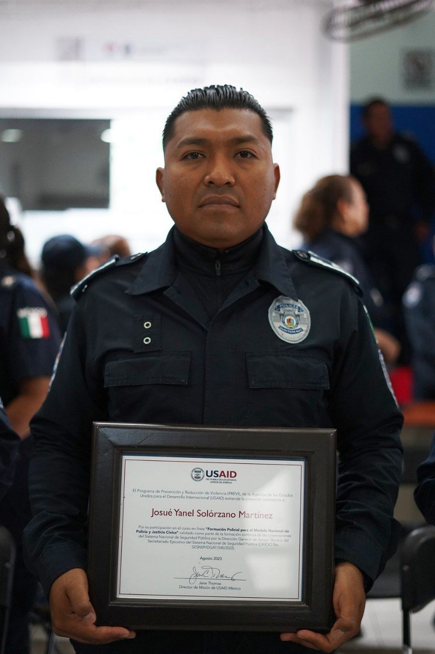 En el evento en las instalaciones de dicha corporación, la Primera Autoridad Municipal destacó que un paso para alcanzar ese objetivo es que hayan concluido debidamente el curso desarrollado por el Programa de Prevención y Reducción de la Violencia de la Agencia de los Estados Unidos para el Desarrollo Internacional (USAID/PREVI) y validado por el Secretariado Ejecutivo del Sistema Nacional de Seguridad Pública, como parte de la formación continua a quienes integran las instituciones pertenecientes al Sistema Nacional de Seguridad Pública.