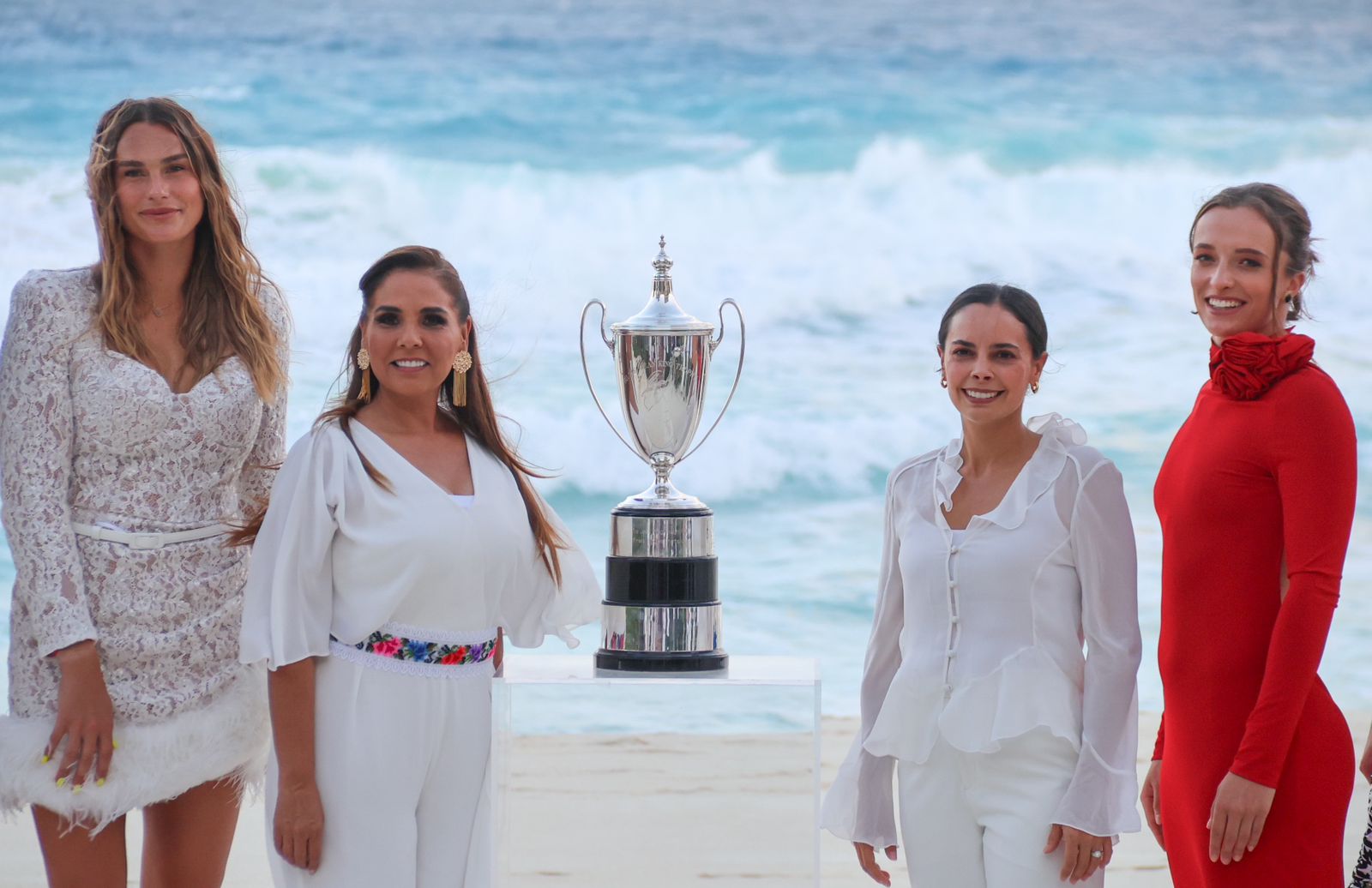 Cancún, Q.R., a 28 de octubre de 2023.- A fin de seguir ampliando la oferta turística en Cancún, la Presidenta Municipal de Benito Juárez, Ana Paty Peralta, acompañó a la gobernadora del estado Mara Lezama, a la ceremonia de bienvenida de las mejores tenistas que participarán en el torneo mundial “WTA Finals Cancún”, el cual dará inicio el 29 de octubre y concluirá el 05 de noviembre.