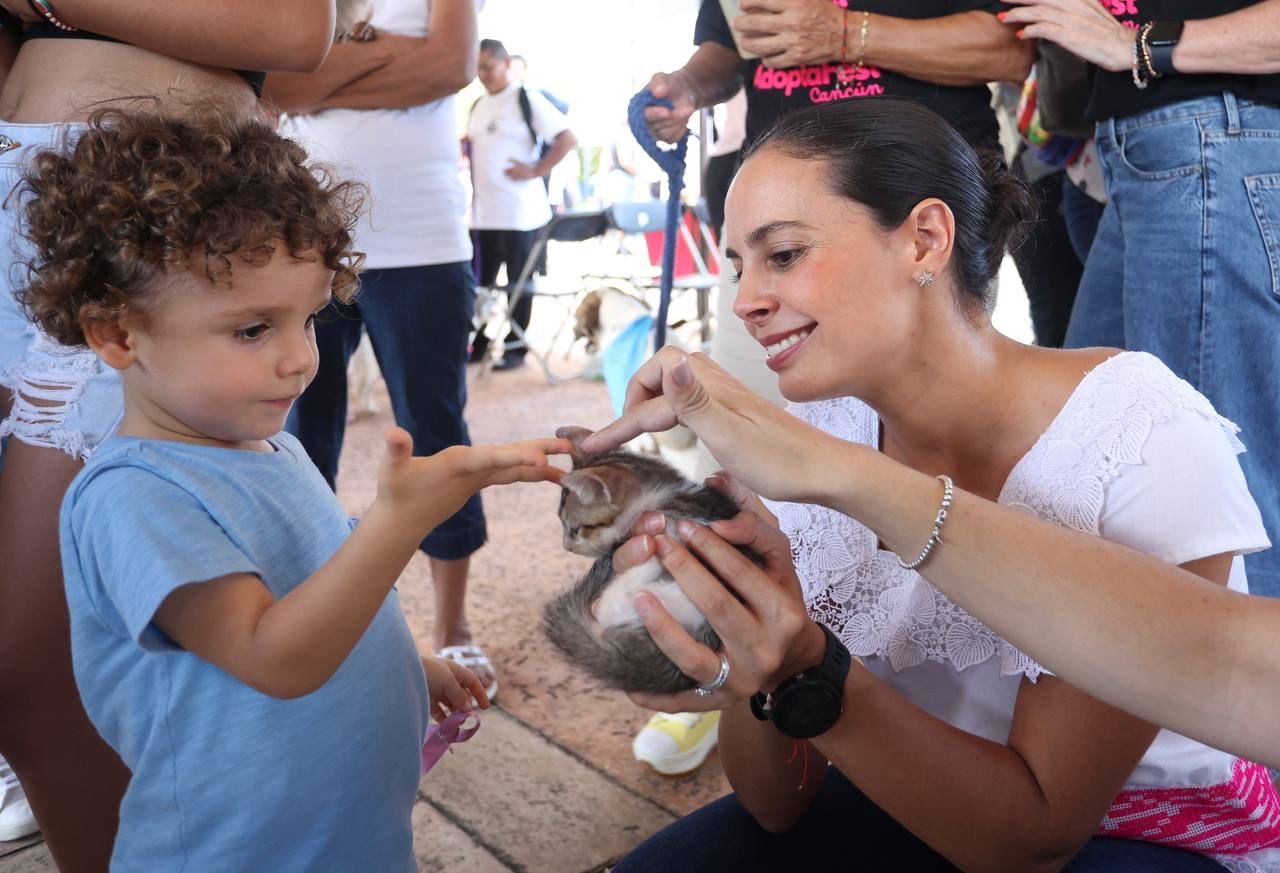 Cancún, Q. R., a 28 de octubre de 2023.- “Al adoptar, ayudamos a brindarle a los perritos y gatitos un hogar digno, les damos una familia que los llene de amor y los alejamos del maltrato que puedan recibir en la calle. El bienestar animal es parte de una sociedad responsable, moderna y sostenible”, afirmó la Presidenta Municipal, Ana Paty Peralta, al encabezar el “Adoptafest”, un evento en el que las y los cancunenses adoptaron con responsabilidad a perros y gatos que requerían la atención y compañía de una familia.