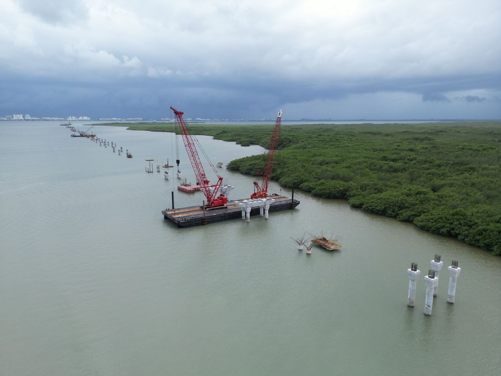 Este puente, con una longitud de 8.8 kilómetros, conectará de manera estratégica la zona hotelera de Cancún con el Boulevard Colosio y las Avenidas Tulum, Kabah y Bonampak.