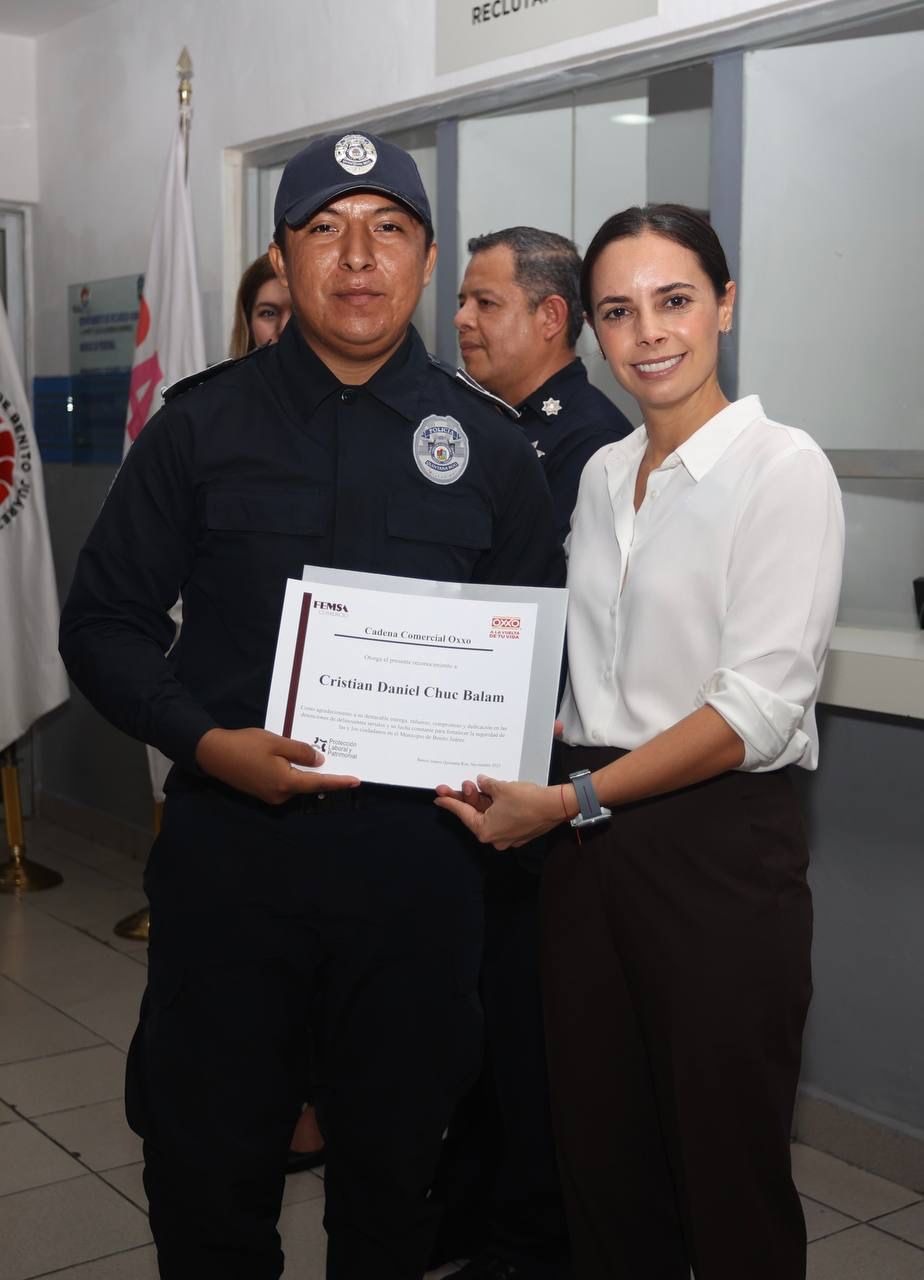Como muestra de ello, la Primera Autoridad Municipal participó en la entrega de incentivos a 30 elementos operativos de la Secretaría Municipal de Seguridad Ciudadana y Tránsito por parte de la cadena comercial Oxxo, ya que han sido clave para las detenciones y puestas a disposición más relevantes en el periodo comprendido de mayo a octubre.