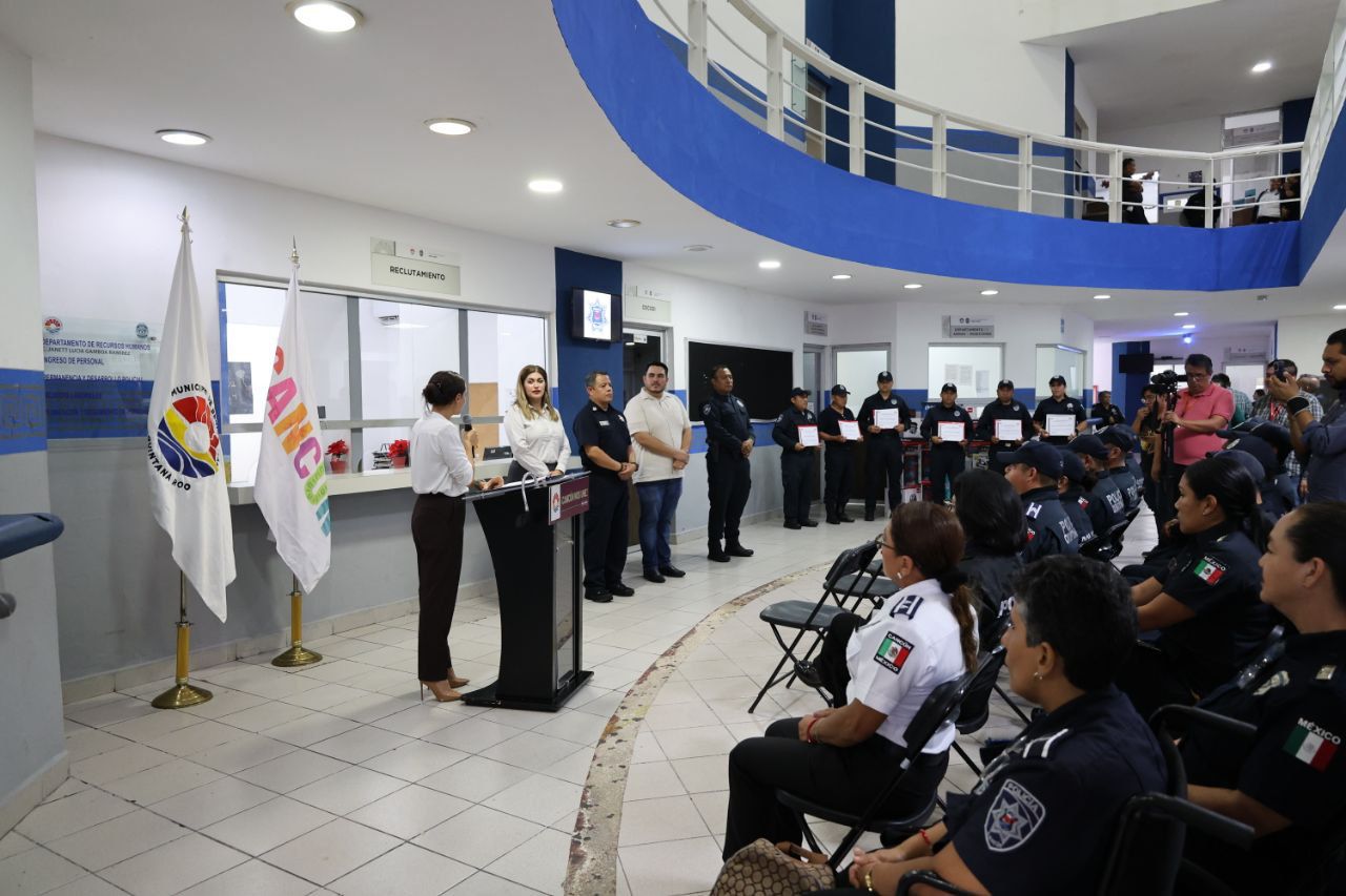 “El compromiso de los policías cancunenses con la ciudadanía es enorme, por eso estoy sumamente agradecida, yo me siento muy orgullosa de ustedes. Hay que seguir trabajando juntos, no bajemos la guardia, todo el esfuerzo y el compromiso; quiero que ustedes sean esos líderes en sus equipos de trabajo y que contagien ese entusiasmo así como las ganas de hacer siempre lo mejor”, les comentó a los servidores públicos.
