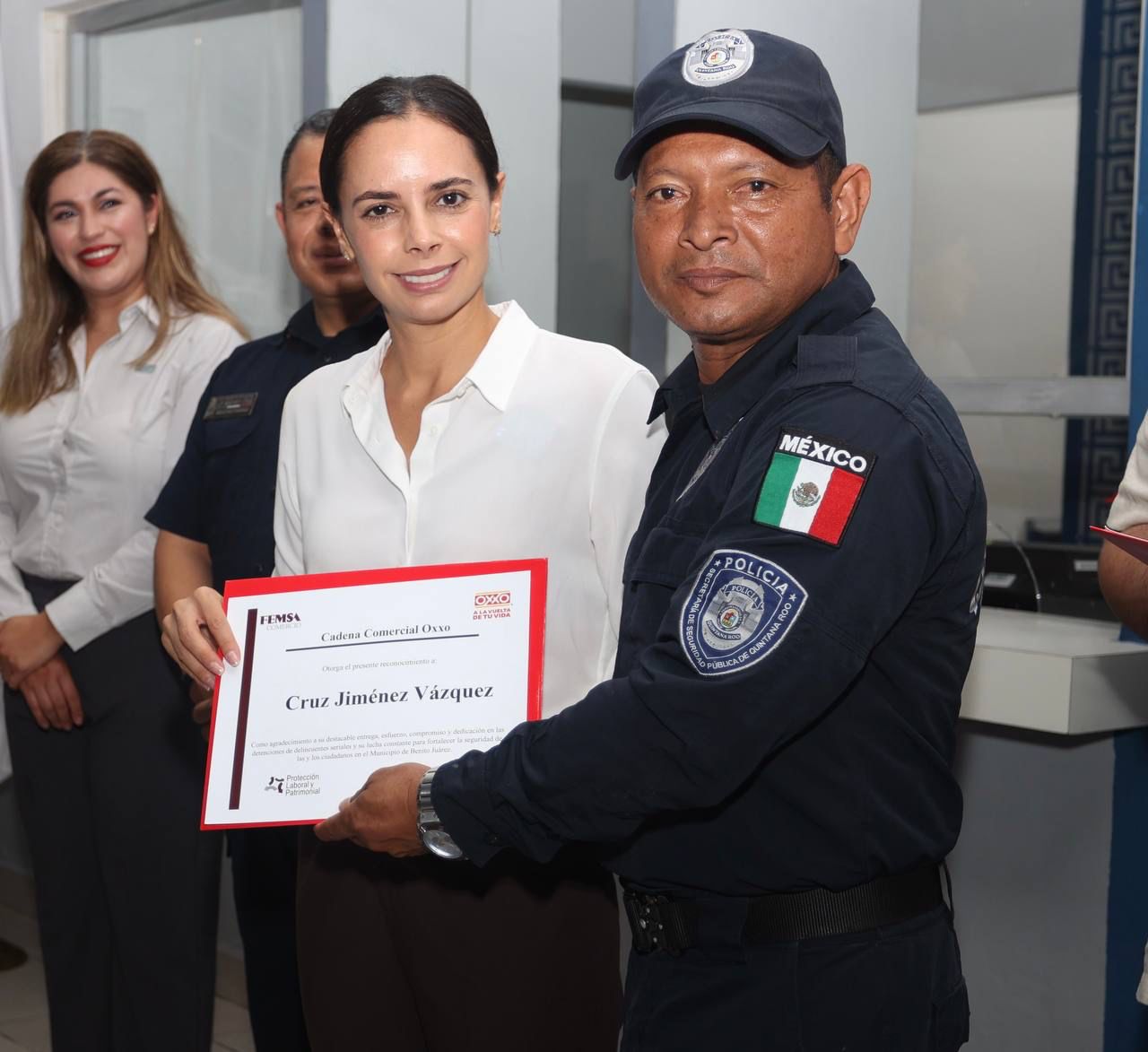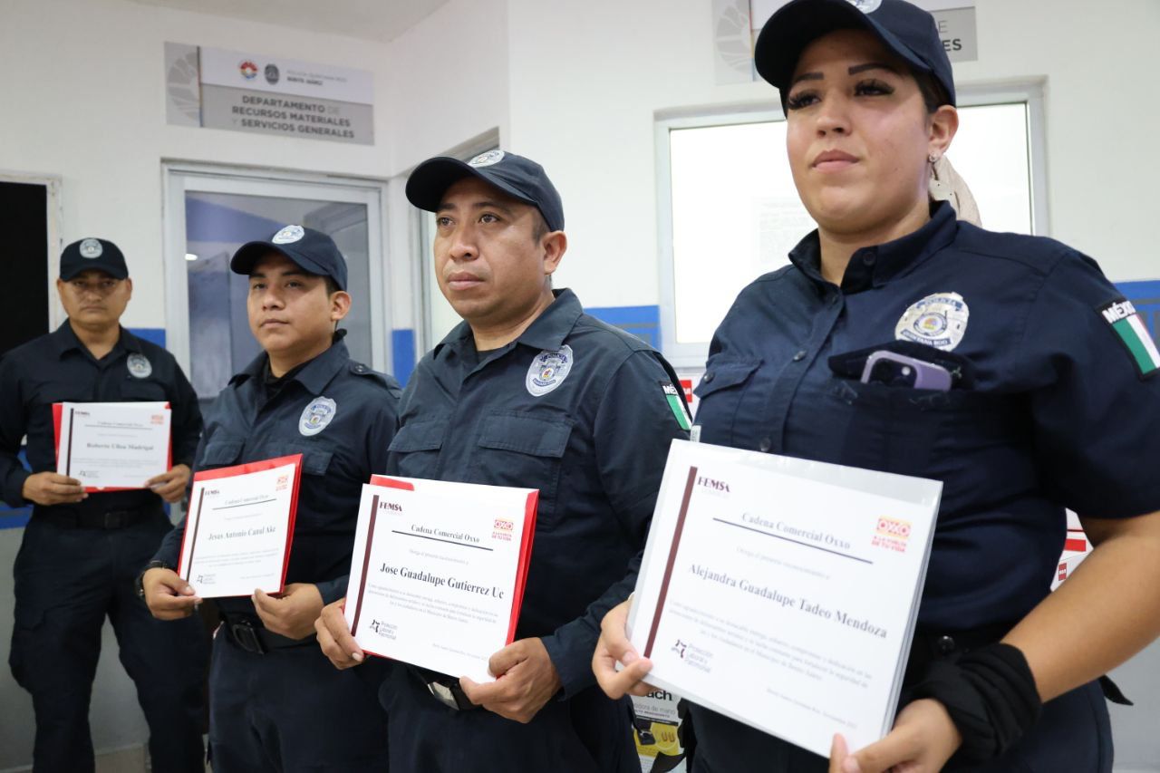 Por parte de la empresa, el encargado de Recursos Humanos de Oxxo en Plaza Kukulcán, Jesús Abraham Marín, resaltó que los sobresalientes resultados de la reducción de siniestralidad como factor que incide en la delincuencia y la violencia, son gracias a la estrategia de la policía y la intervención de su personal, quien día a día demuestra su entrega, pasión y valentía.