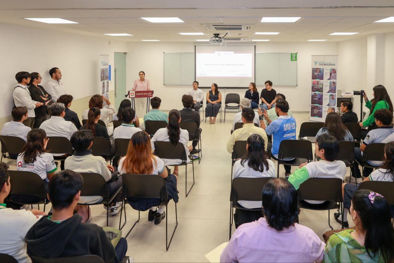 Cancún, Q. R., a 15 de noviembre de 2023.- Con el firme objetivo de promover la cultura de participación y expresión responsable entre la juventud, la Presidenta Municipal, Ana Paty Peralta, inauguró el “Debate Político Municipal” organizado por el Instituto Municipal de la Juventud (IMJUVE), con la participación de más de 30 cancunenses de 15 a 29 años.