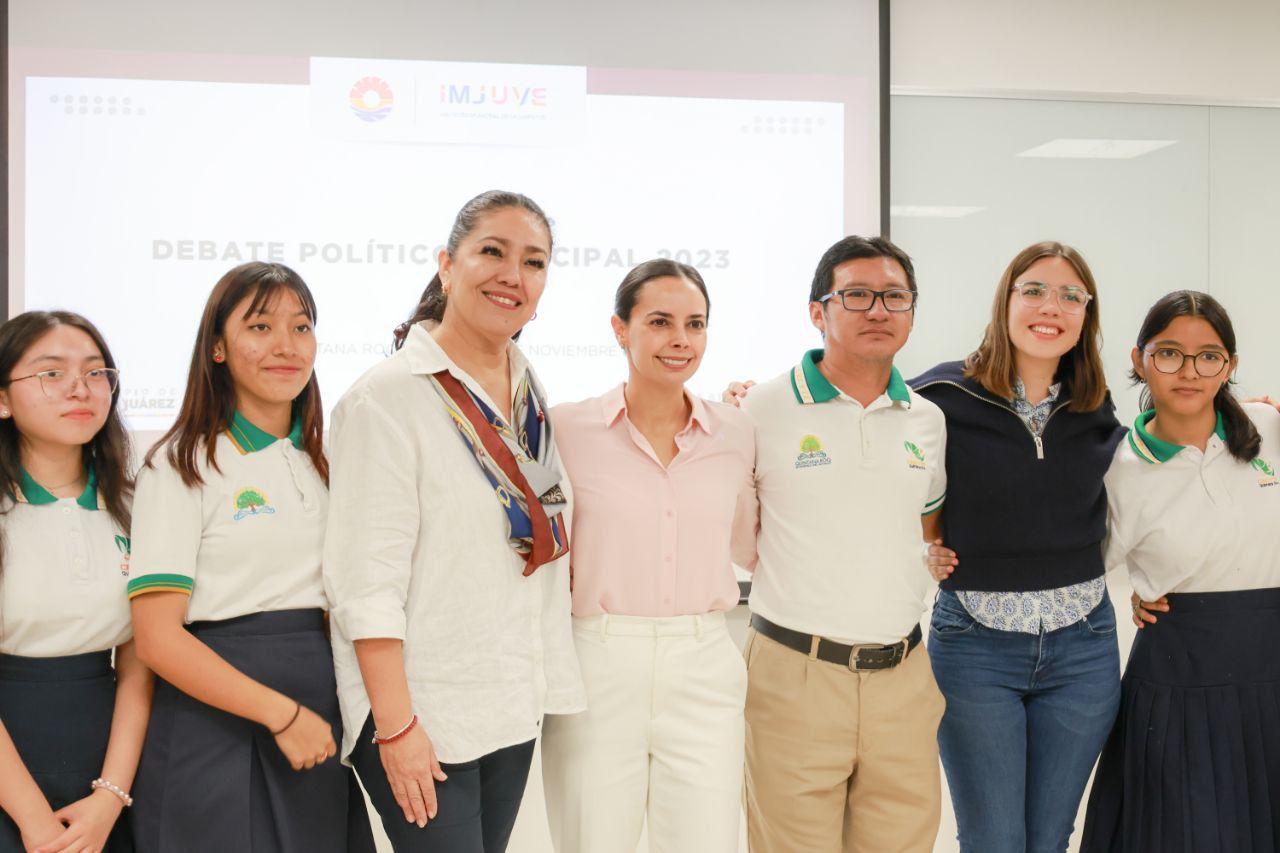 “Estos espacios son para la construcción de ideas, son para la construcción de debates propositivos; las juventudes tenemos una responsabilidad muy importante no solamente en nuestra ciudad, sino en la construcción de una sociedad y de un todo, partiendo desde nuestra comunidad estudiantil, y todas esas acciones e ideas van haciendo que las cosas sucedas mejor, requerimos mucho de la suma de estas ideas”, dijo durante su intervención previa al debate y luego de ser recibida en la casa de estudios por jóvenes del plantel educativo y otras instituciones.
