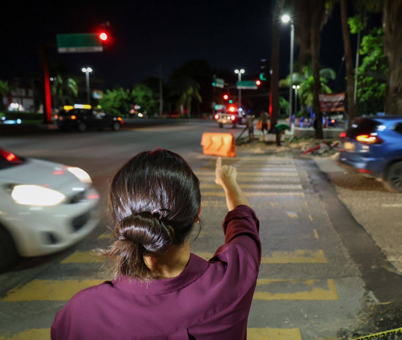 La Primera Autoridad Municipal visitó los trabajos en la rotonda donde colindan las avenidas Bonampak y Sayil, donde expresó que con estas labores, la ciudad se pone a la vanguardia en la seguridad de las y los peatones, por lo que los invitó a ser responsables al cruzar las avenidas y respetar los tiempos adecuados para garantizar su seguridad, al mismo tiempo que, recomendó a los conductores ser empáticos y solidarios con los transeúntes.