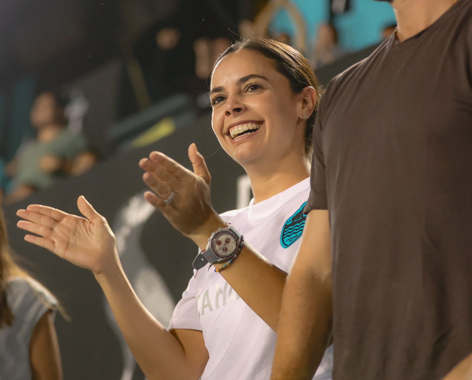 Cancún, Q. R., a 19 de noviembre de 2023.- La Presidenta Municipal de Benito Juárez, Ana Paty Peralta, acudió al Estadio Olímpico Andrés Quintana Roo, para mostrar su apoyo al equipo local de fútbol Cancún FC, en los cuartos de final de la liga BBVA Expansión MX, donde se enfrentaron a CF Mérida, llevándose la victoria y pasando a la siguiente fase, más cerca de la copa.