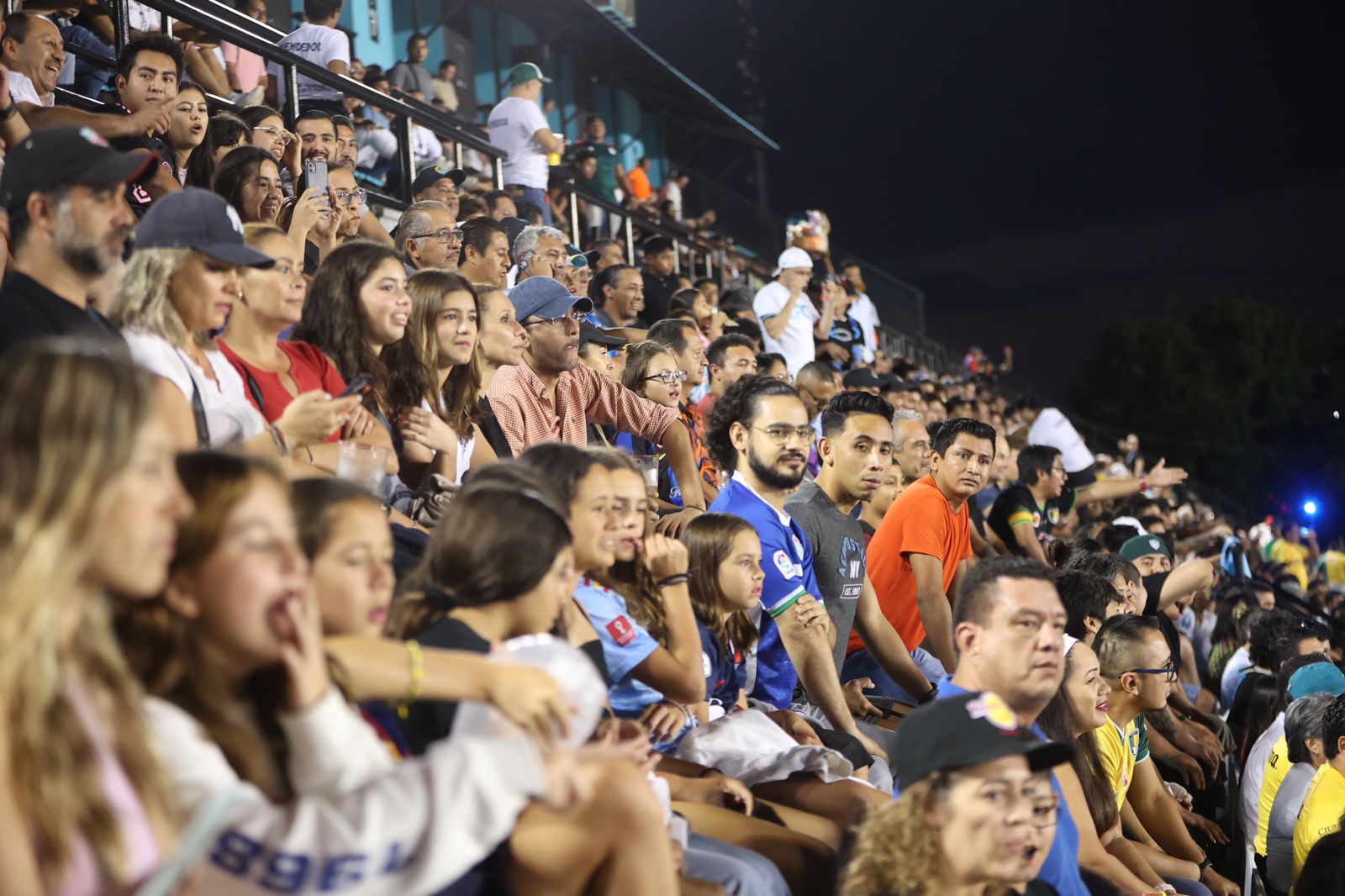 Durante el emocionante encuentro del clásico peninsular, la Alcaldesa, junto a familias cancunenses, alentaron al equipo desde las gradas, mientras los jugadores daban lo mejor de ellos en cada jugada para obtener la victoria en este importante partido.