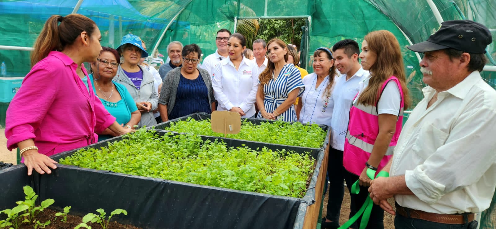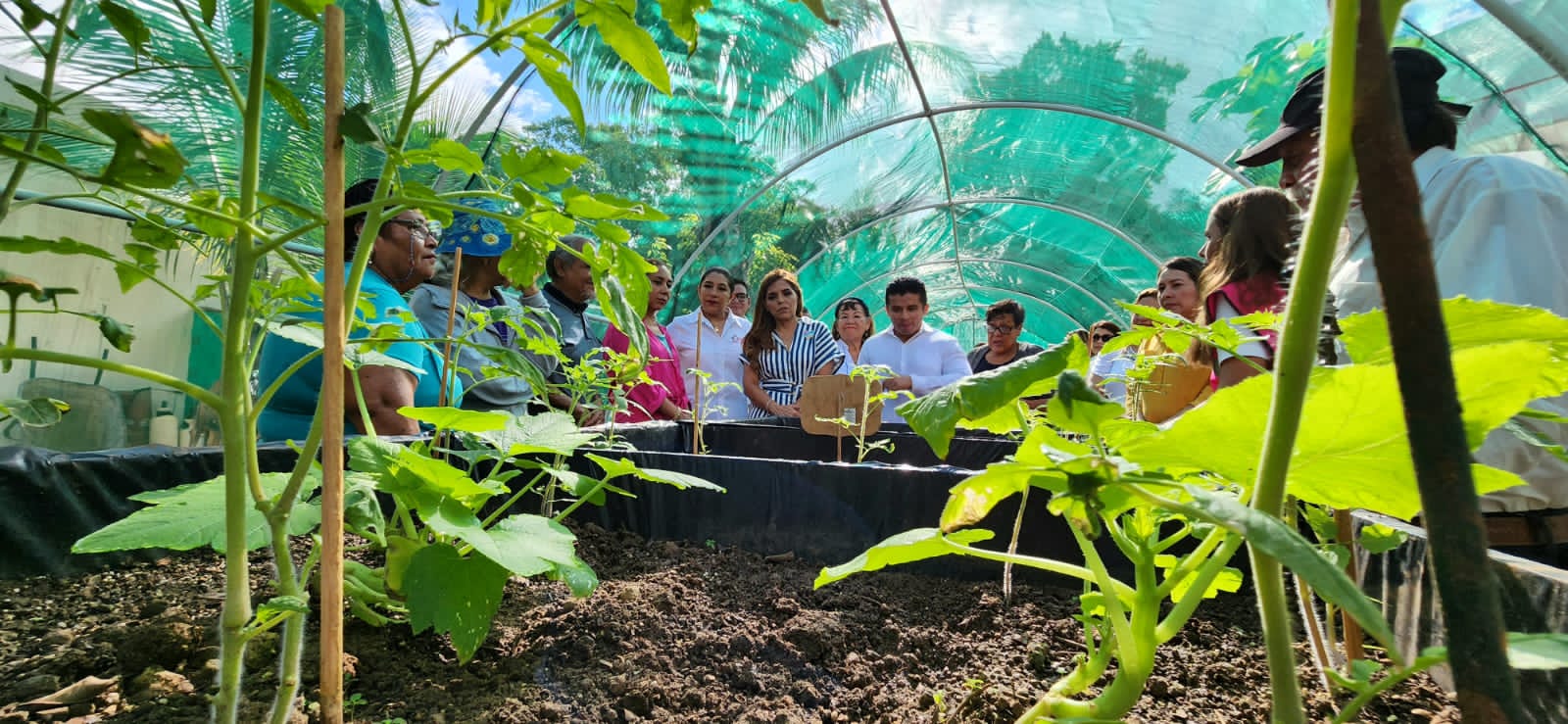 Acompañada por la Presidenta Honoraria del Sistema DIF Quintana Roo, Verónica Lezama Espinosa, Sendo Rodríguez informó que el objetivo de este huerto es brindar un espacio destinado a la producción de productos hortícolas para el autoconsumo y la autosuficiencia alimentaria.