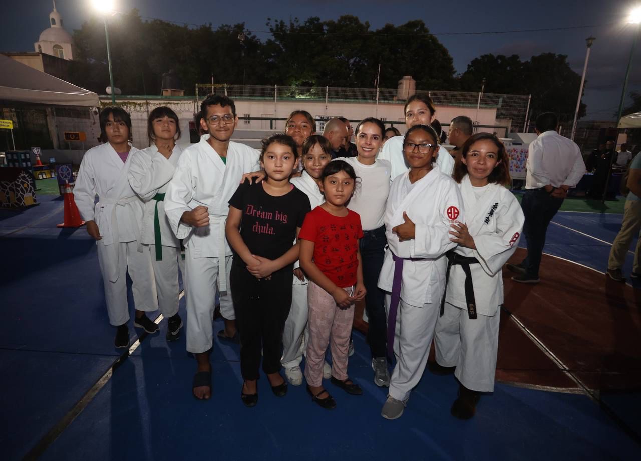 Durante su estancia en el recinto, Ana Paty Peralta, en compañía de las niñas, niños y jóvenes, observaron la presentación de karate a cargo del Doyo Junpuu-Kan del Centro de Desarrollo Comunitario (CDC) de la 235 y participaron en las actividades: píntate de naranja, usha, lotería, jenga, entre otros.
