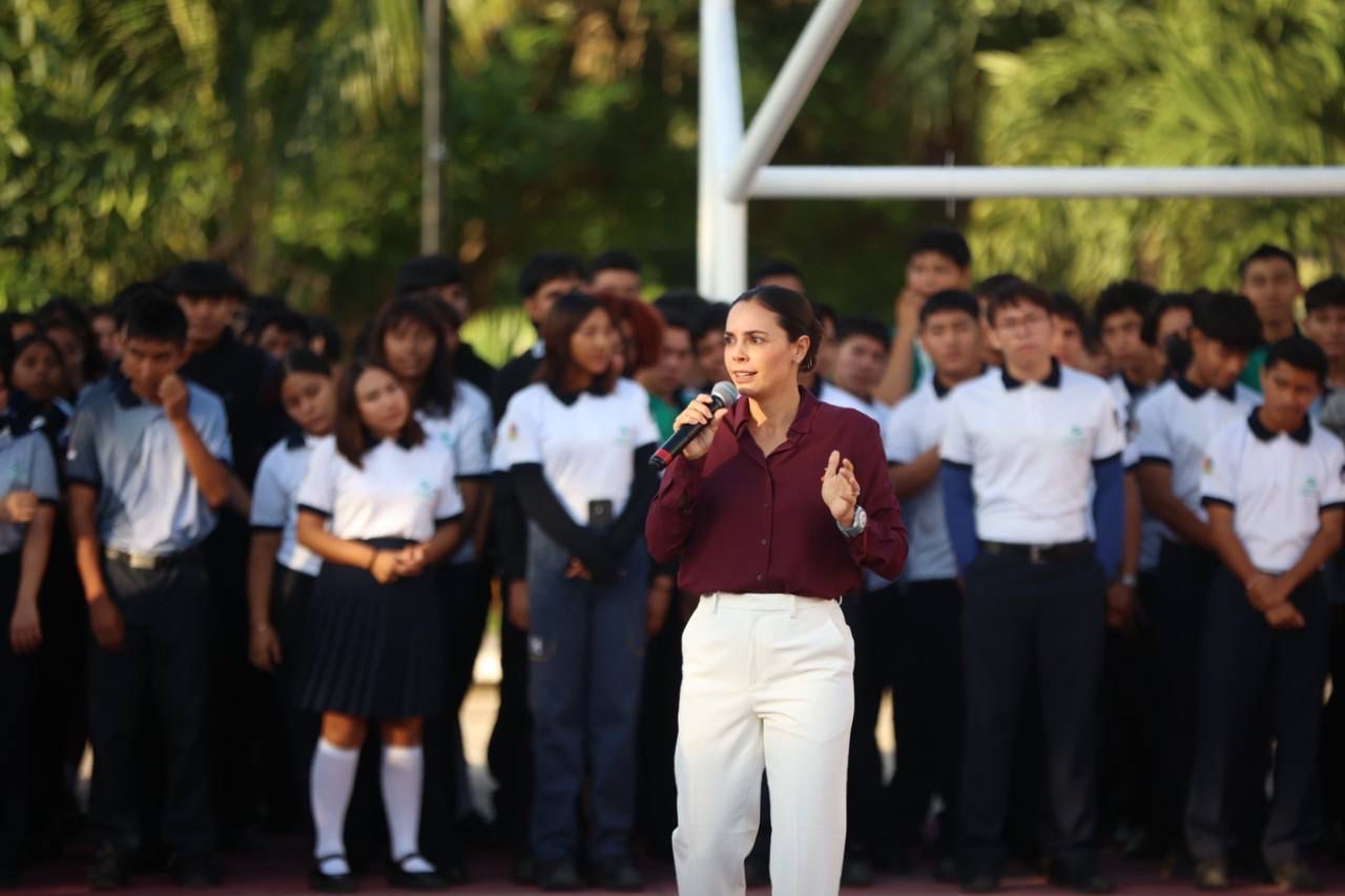 Después de cantar con respeto y entusiasmo el Himno de Quintana Roo, resaltó la fortaleza del estado al ser mencionar la frase “selva, mar, historia y juventud”, donde enfatizó que el territorio es juventud e historia, conformado por una población mayormente joven, donde dicho sector juega un papel fundamental en el desarrollo de la entidad, reconociendo las profundas raíces culturales que llenan a la población de orgullo de ser mexicanos, quintanarroenses y cancunenses.