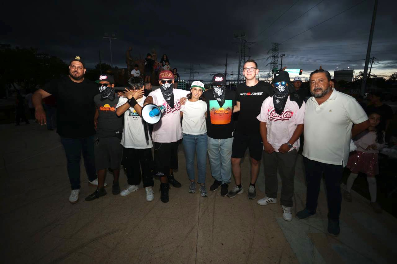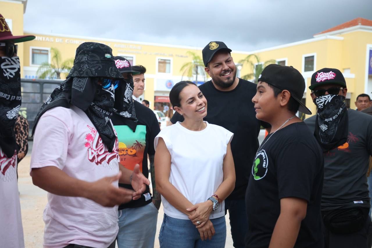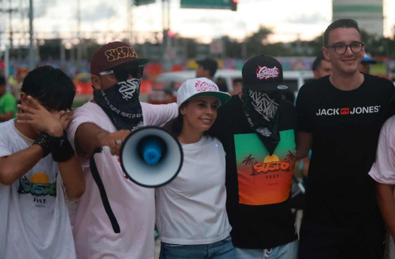 Cancún, Q. R., a 26 de noviembre de 2023.- Como parte de sus recorridos itinerantes por diferentes eventos en Cancún organizados por la ciudadanía, la Presidenta Municipal, Ana Paty Peralta, estuvo presente en el tercer y último día del encuentro cultural y urbano “Sustos Fest 2023”, en el que convivieron precisamente artistas urbanos, clubes de autos, aprendices de parkour, músicos, entre otros.