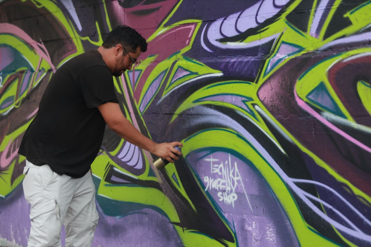 Los organizadores le explicaron diferentes técnicas de pintura y trazos, así como los materiales que emplean en esa modalidad de arte visual callejero, con el que buscan expresarse libremente y alejarse de los videojuegos.