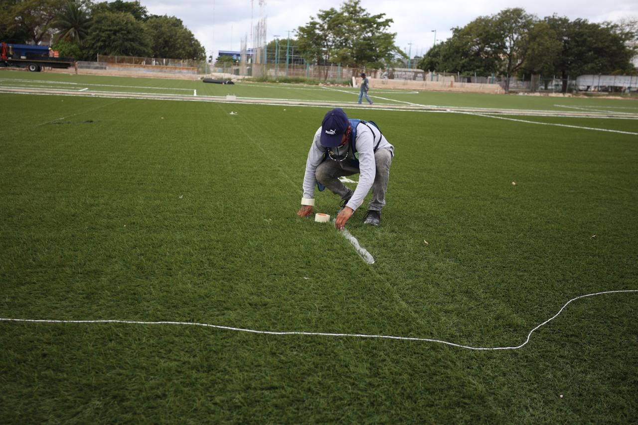 De igual forma, detalló que con el apoyo de 36 trabajadores en total, también se continúa con el injerto de líneas delimitadoras de los espacios de juego, además de que se coloca las pequeñas estructuras de concreto en las que se fijarán los postes para el cercado de protección a la zona.