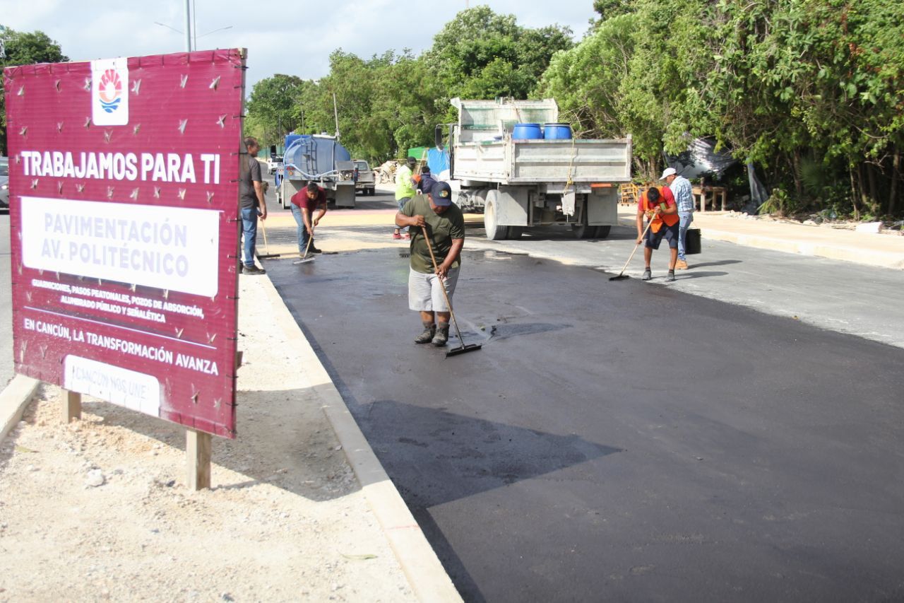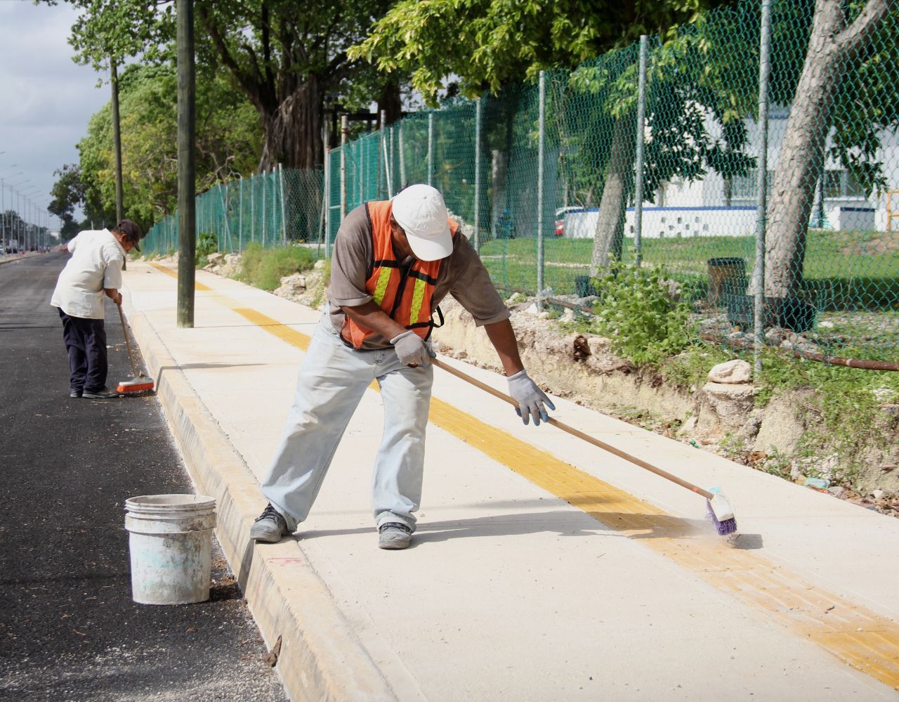 “Estamos en esta avenida Politécnico, entre las avenidas México y Tepich; vamos muy bien, con un gran avance arriba del 50 por ciento y esperamos concluir en enero de 2024, pero ya se ve cómo va quedando las nuevas banquetas adecuadas con las líneas podotáctiles, accesibilidad universal y pozos de absorción que se requieren”, afirmó.