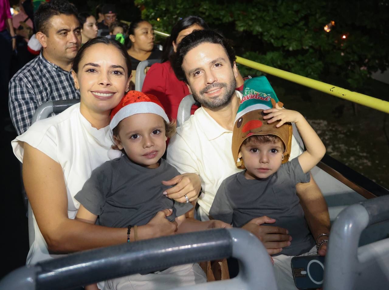 Al caer la tarde, Ana Paty Peralta junto con sus dos pequeños, alumnos del jardín de niños “Liz María Serradel”, madres de familia, directores de dicho plantel y hasta el mismo “Santa Claus”, subieron a los camiones “Turibus” de la empresa ADO, para poder disfrutar del recorrido de encendido por todas las glorietas, en las cuales disfrutaron de una sana convivencia entre villancicos navideños, botargas, dulces y regalos de los patrocinadores.