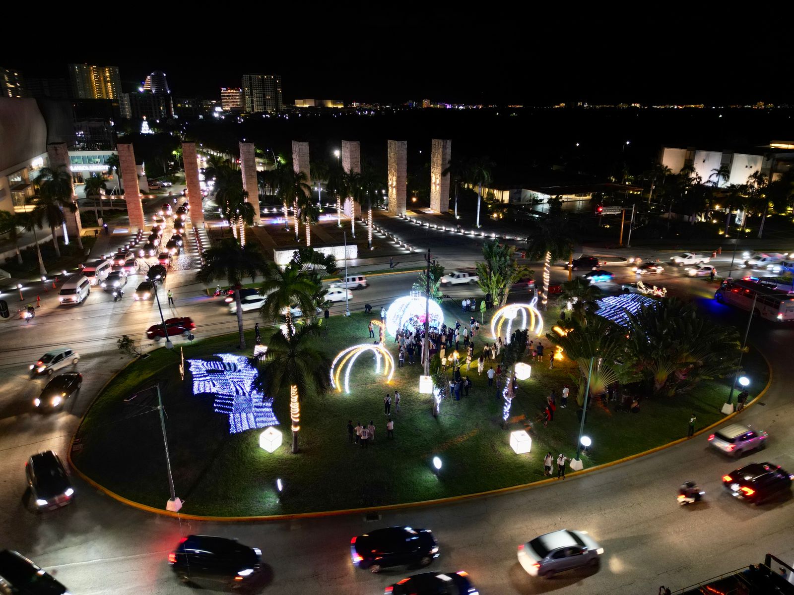 Cancún, Q. R., a 04 de diciembre de 2023.- Por segundo año consecutivo para motivar el espíritu navideño en esta temporada festiva, las primeras seis glorietas de avenidas principales de 18 en total y el Palacio Municipal fueron iluminados en vistosos colores, luego de los conteos regresivos en las ceremonias encabezadas por la Presidenta Municipal, Ana Paty Peralta, y la gobernadora Mara Lezama, quienes además convivieron en Cancún con decenas de familias que acudieron a presenciar ambos mágicos momentos.