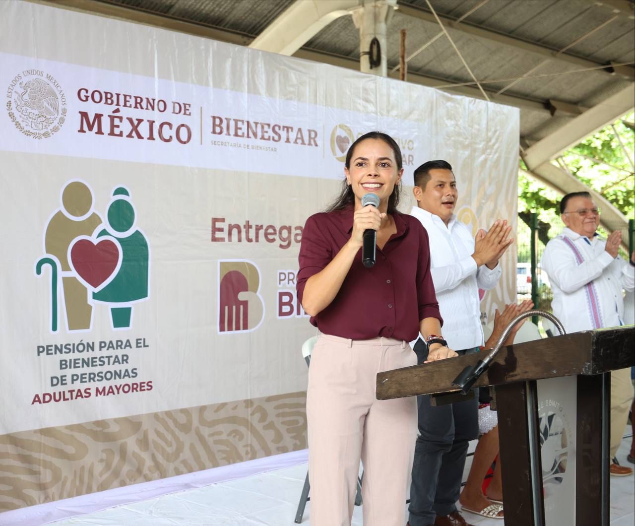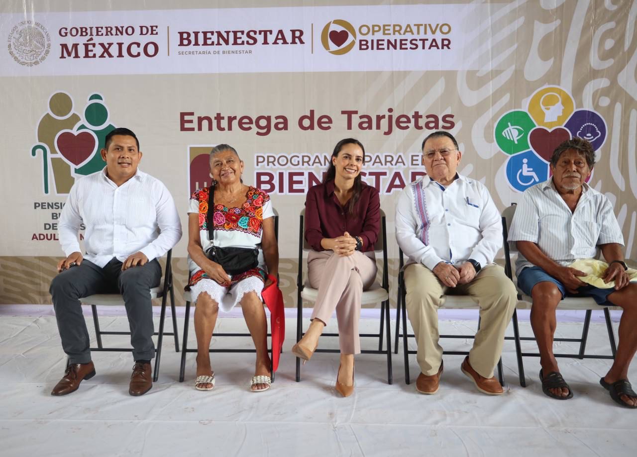 Cancún, Q. R., a 13 de diciembre de 2023.- La Presidenta Municipal de Benito Juárez, Ana Paty Peralta, acompañó al delegado federal de los Programas Integrales para el Desarrollo en Quintana Roo, Arturo Emiliano Abreu Marín, a la entrega de 250 tarjetas del Programa Pensión para el Bienestar de los Adultos Mayores, el cual forma parte de las políticas de bienestar social implementadas por el Gobierno de México.