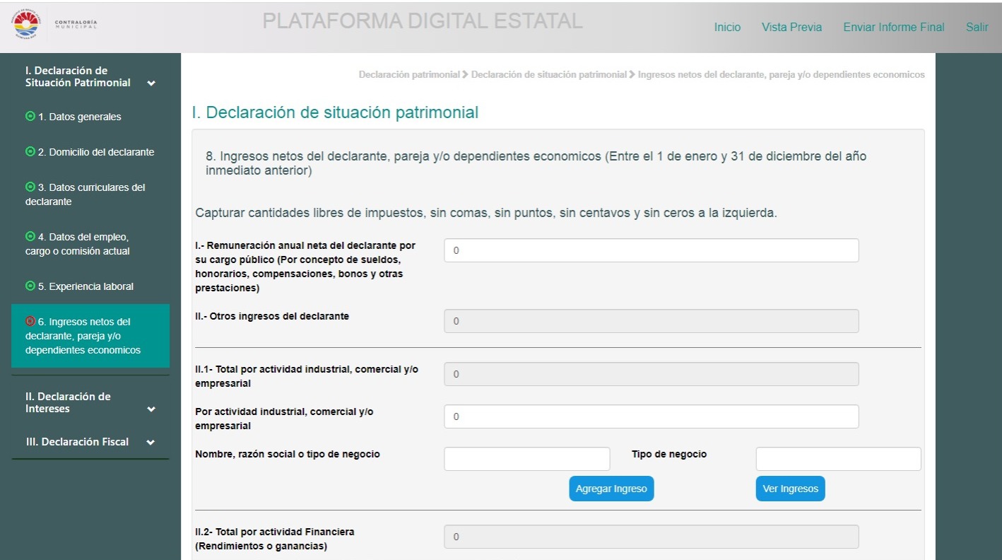 forma presentando en mayo su Declaración de Modificación Patrimonial, en la