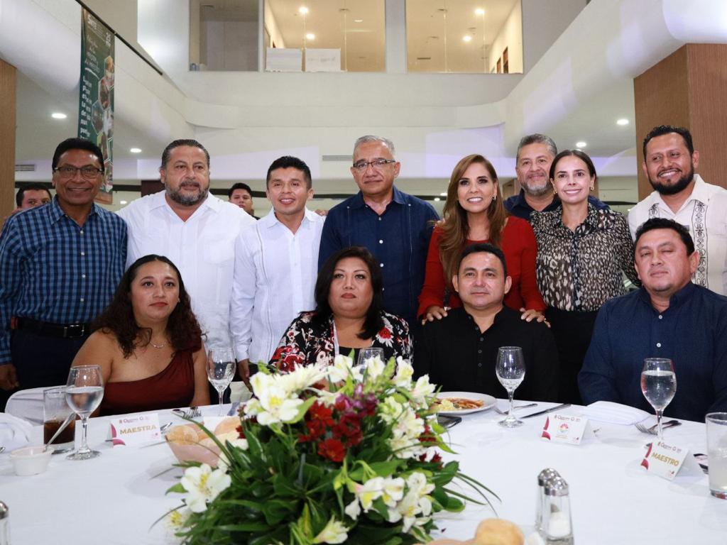 Por su parte, la gobernadora Mara Lezama felicitó a todos los profesionales de la educación y comentó que para ella es un honor celebrar con las y los maestros, porque son un orgullo, son esa luz de esperanza para muchas niñas, niños y adolescentes.