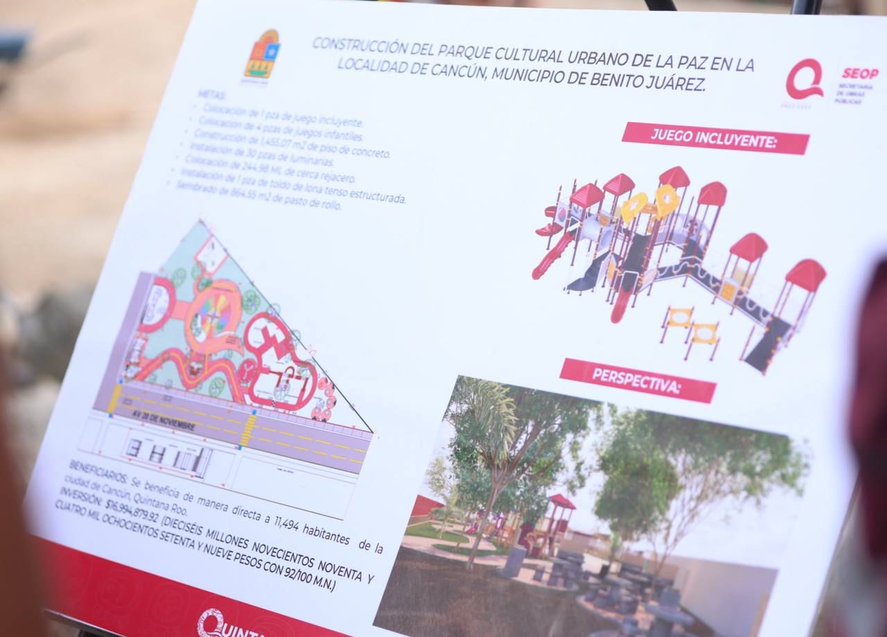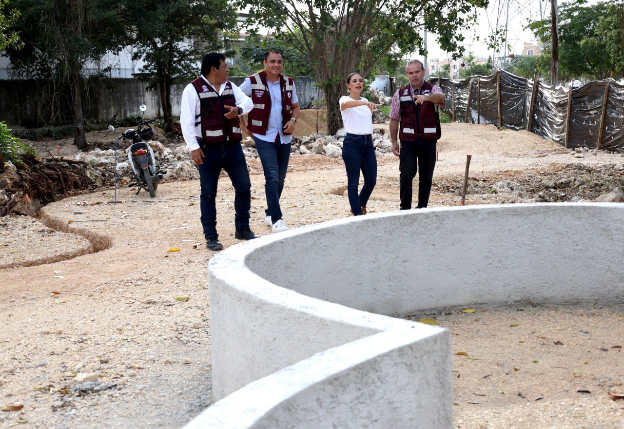 “Aquí en Villas Otoch Paraíso recuperamos este espacio que era lote baldío y lo donamos al Gobierno del Estado, donde gracias a las gestiones de la gobernadora Mara Lezama hoy se construye este espacio recreativo, con una inversión de más de 16 millones de pesos; esta importante obra lleva un avance de 35% y servirá para que las y los cancunenses disfruten al aire libre, se ejerciten y construyan hermosos momentos en familia”, mencionó la Presidenta Municipal, Ana Paty Peralta al constatar la obra.
