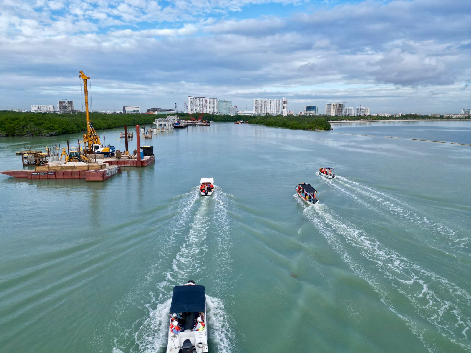 Cancún Q. R., a 16 de enero de 2024.- Autoridades del Ayuntamiento de Benito Juárez y del Gobierno del Estado realizaron un recorrido para constatar los avances físicos del Puente Vehicular Nichupté, que son del 37 por ciento en esa obra estratégica impulsada por el Gobierno de México en Cancún.