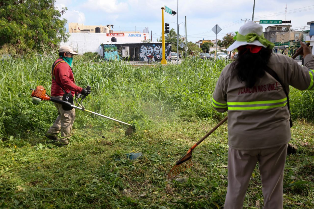 El recorrido lo encabezó la Presidenta Municipal, Ana Paty Peralta, acompañada del secretario municipal de Obras Públicas y Servicios, Salvador Diego Alarcón; el director de Servicios Públicos, José Antonio de la Torre Chambé; el director de Demandas Emergentes, Andrés Santiago León Vidal y demás funcionarios municipales, que recorrieron el perímetro de la Av. Miguel Hidalgo hacia la Av. Puerto Juárez, así como de la Calle 125 a la 137, donde se realizaron trabajos de chapeo, desmonte y retiro de basura.