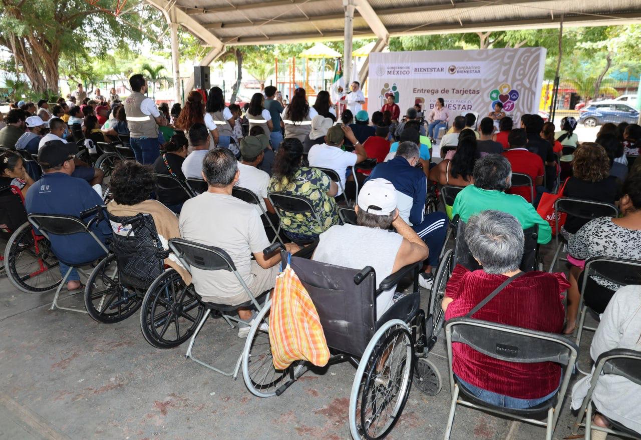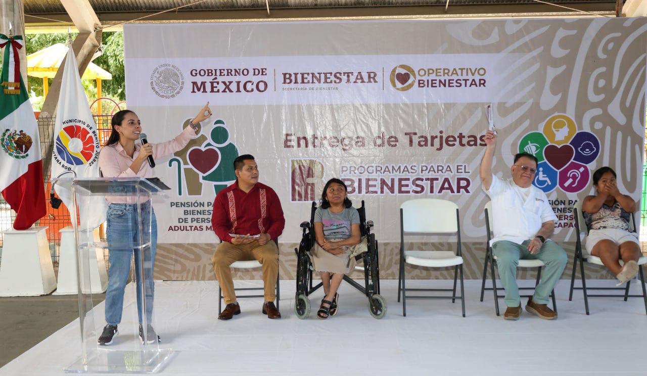 Cancún, Q. R., a 20 de enero de 2024.- En un acto de justicia social y a fin de garantizar un ingreso básico para mitigar el impacto y la desigualdad económica de los grupos vulnerables, autoridades municipales, estatales y federales, realizaron la entrega de tarjetas del programa Pensión para el Bienestar de las Personas con Discapacidad Permanente, con el que se beneficiarán directamente a 200 familias cancunenses.